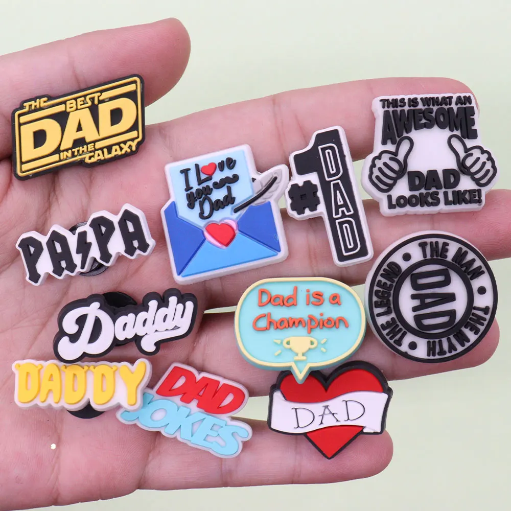 1-34PCS Cartoon Papa Happy Father's Day Best Dad Heart PVC Shoes Charms Accessories Buckle Clog Decorations DIY Bracelet