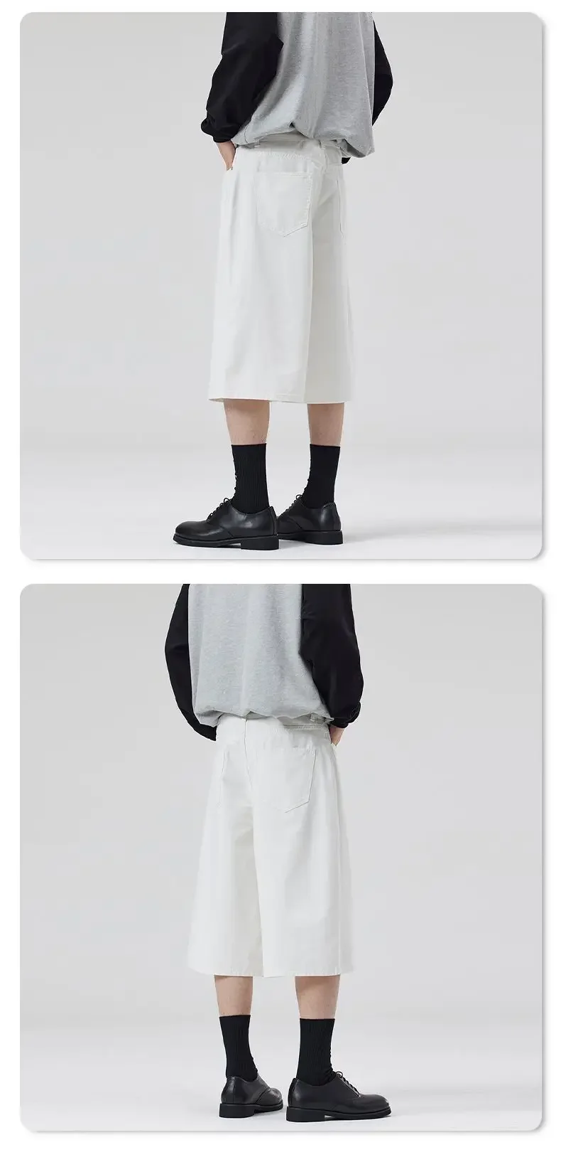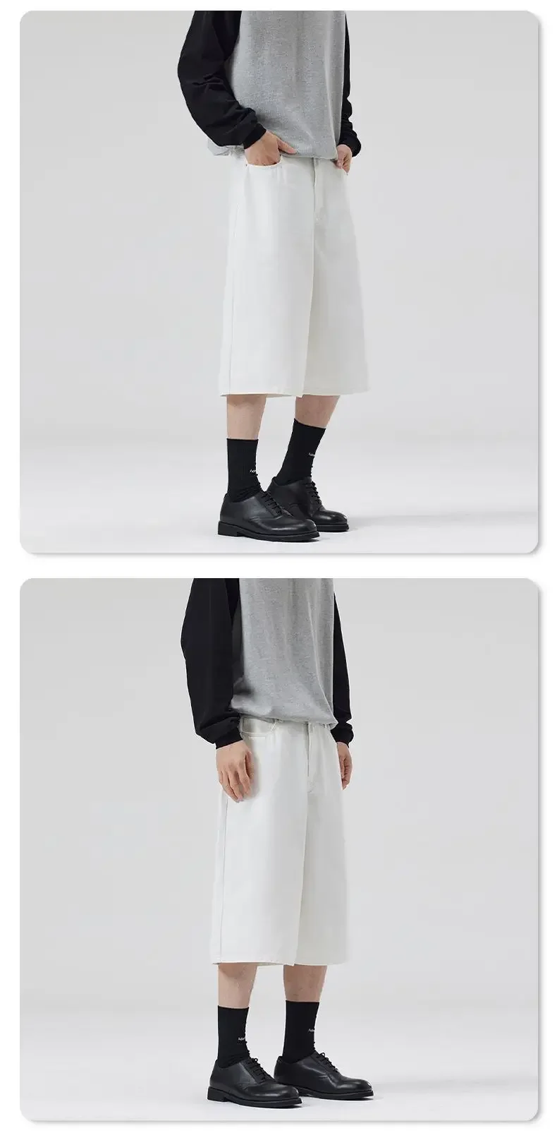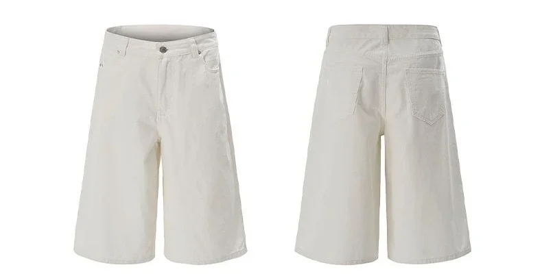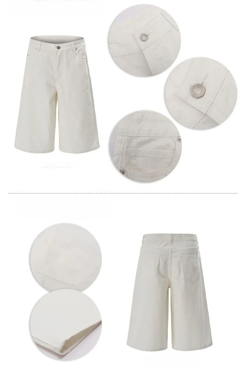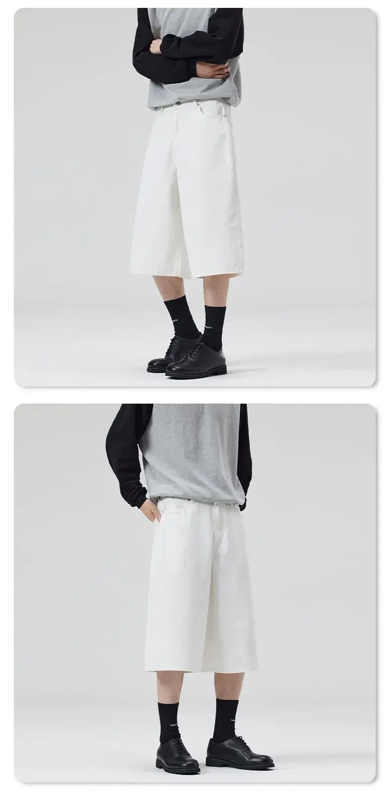 100% Cotton White Jeans Summer Men's Shorts Baggy Wide-leg Casual Calf-length Denim Pants Oversized Loose Fashion Streetwear