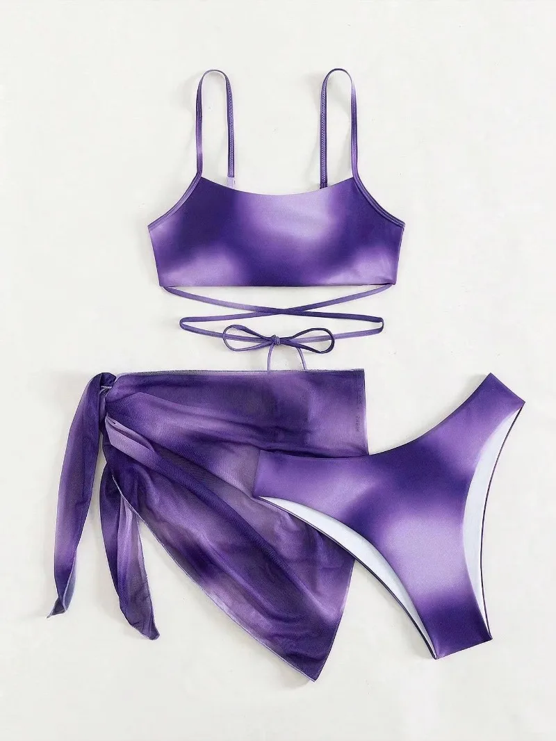 2025 Three-piece Mesh Skirt Split Swimsuit Tie-dye Bikini Fashion Swimsuit Women Bathing Suit Women