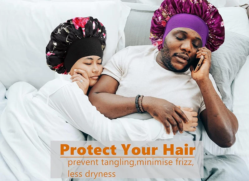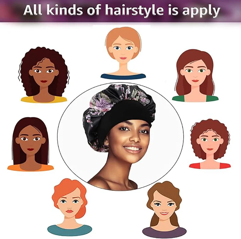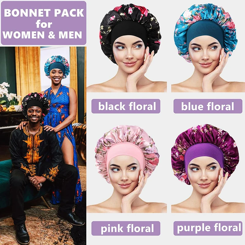 4PCS/LOT Satin Wide Brim Floral Nightcap Bonnet Hair Wrap Night Sleeping Sleep Cap Elastic Soft Band Hair Care Shower Hat