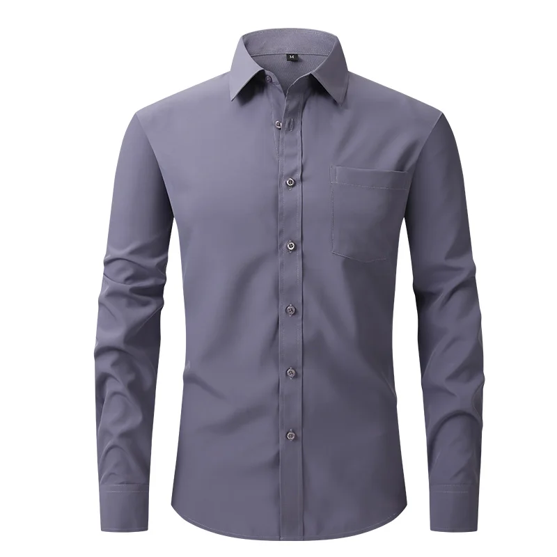 All Around Stretch Men's Shirt Business Casual Long-sleeved Shirt's Professional Formal Anti-wrinkle Solid Color Men's Clothing