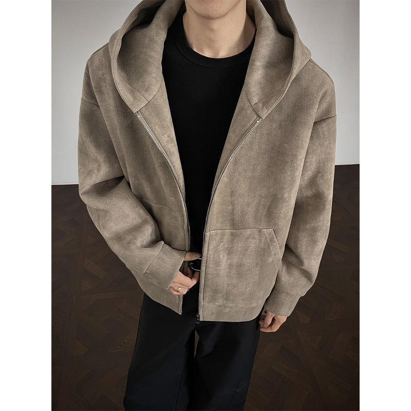 American Retro Tie-dyed Hooded Plus Size Sweater Coat For Men