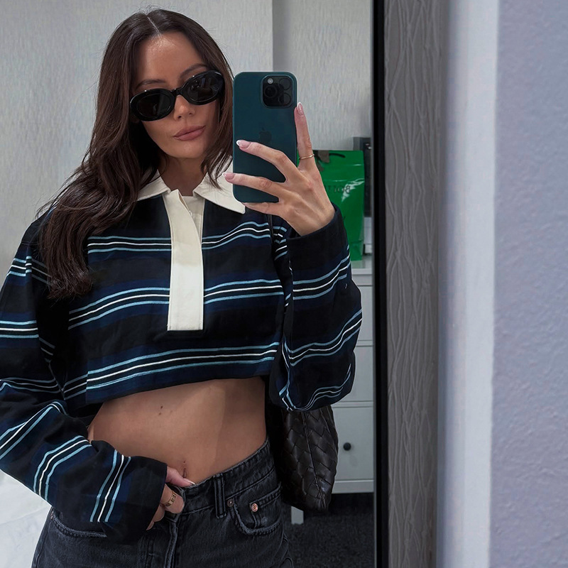Autumn New Pullover Stripe Polo Collar Short Long Sleeve