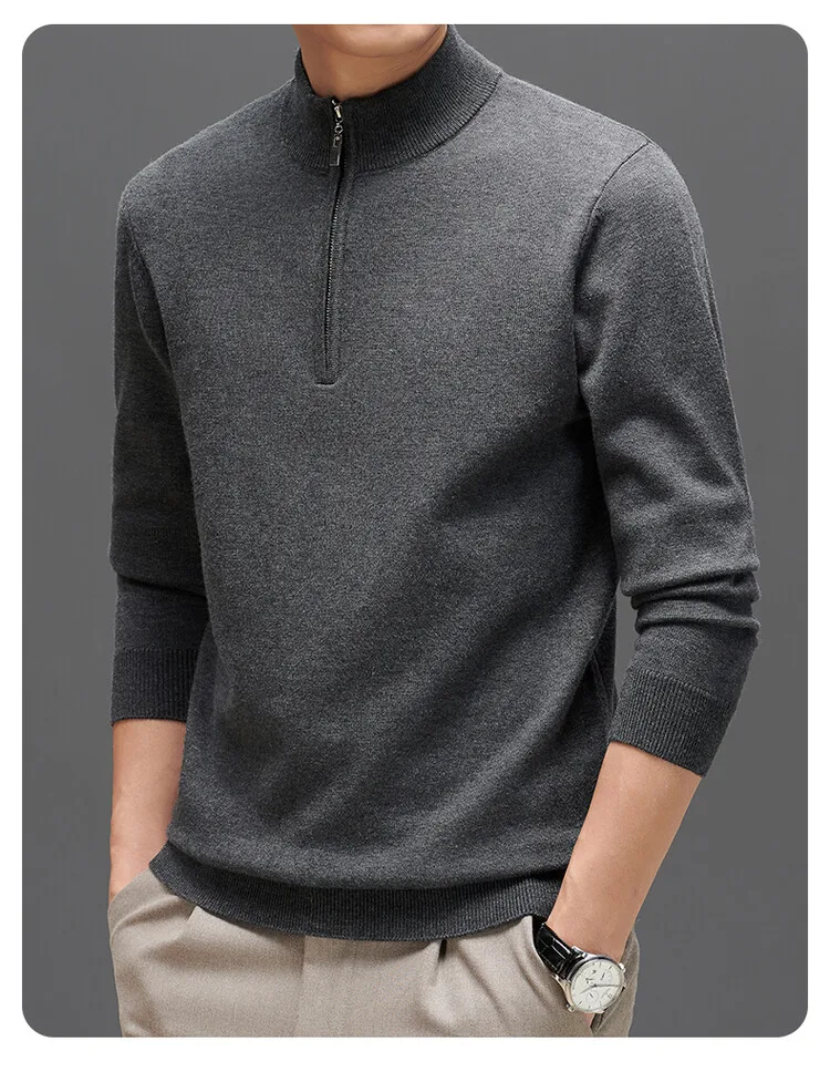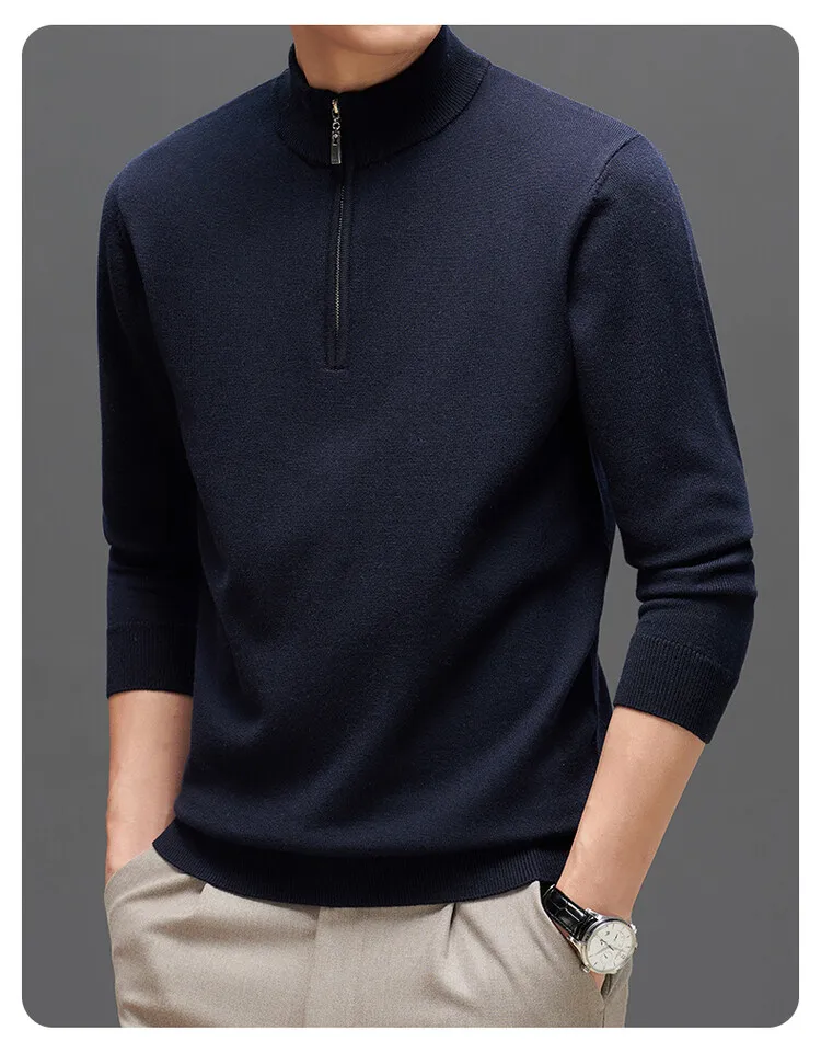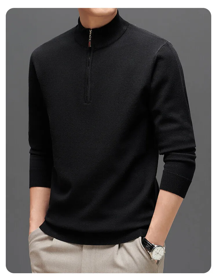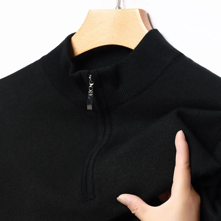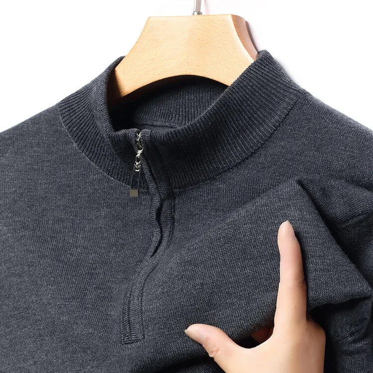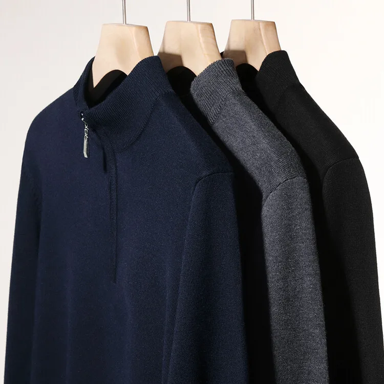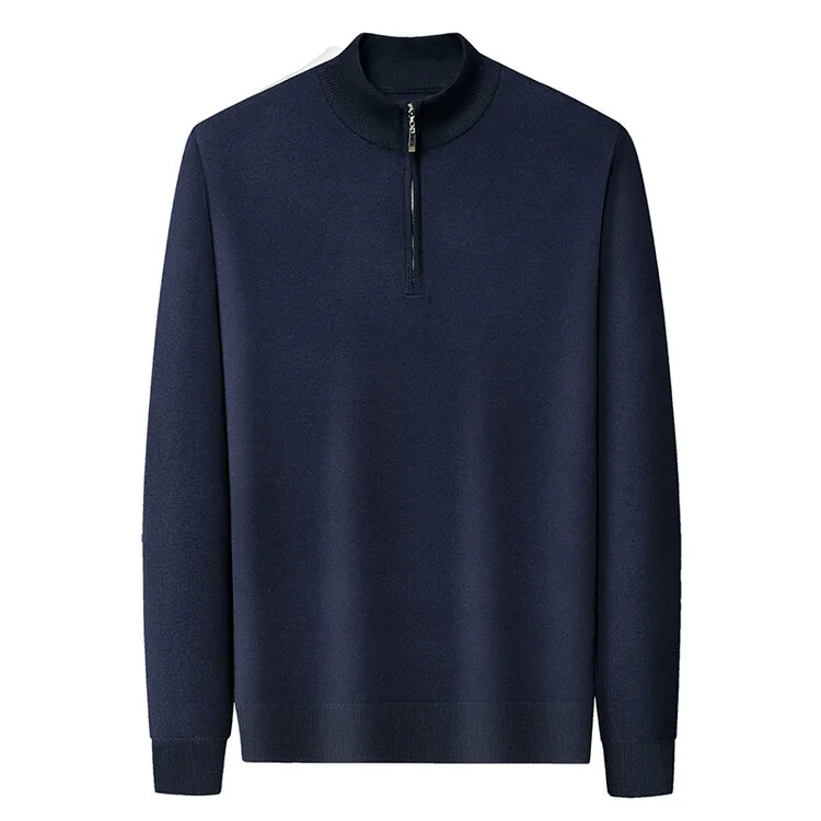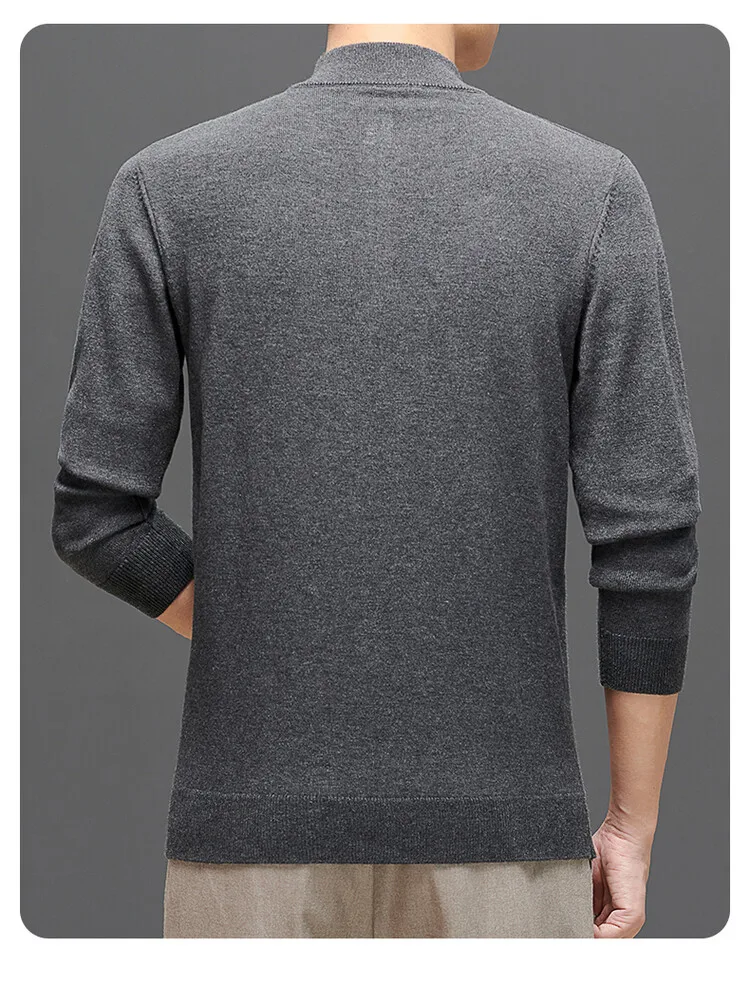 Autumn & Winter Men's Long-Sleeved Sweater, Half Turtleneck Pullover Wool-like Business Casual Top, Half Zip Pullover