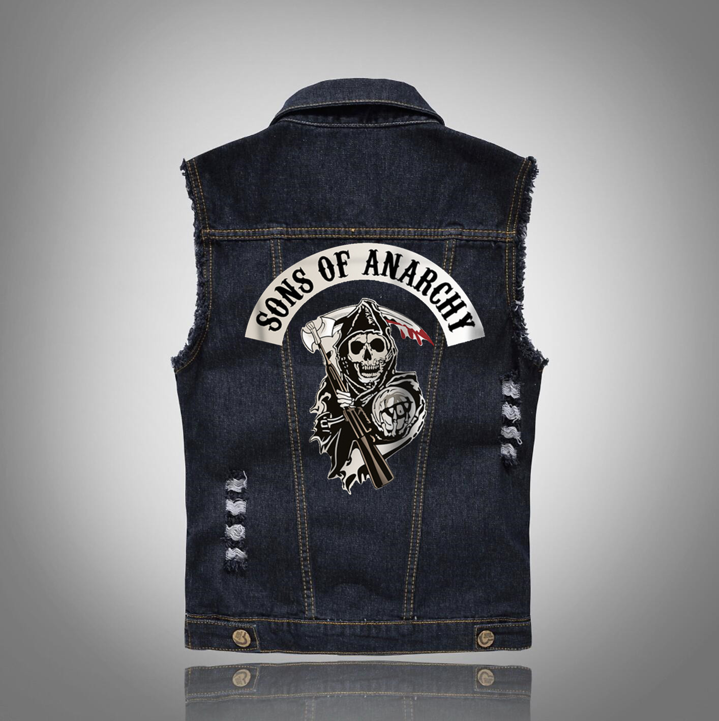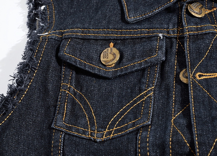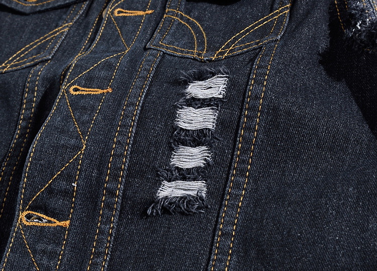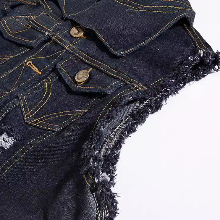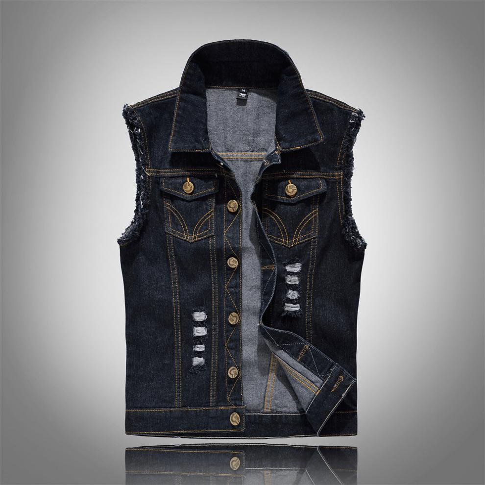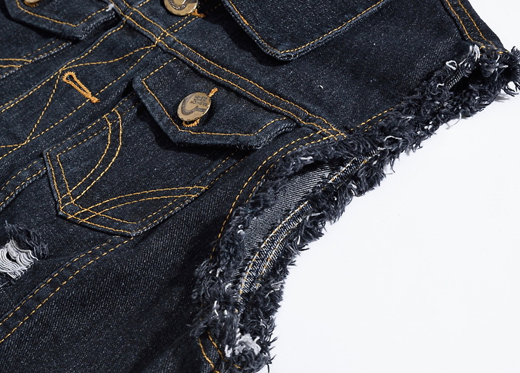 Black Denim Vest Men's Waistcoat Waistcoat Large Size Ripped Vest