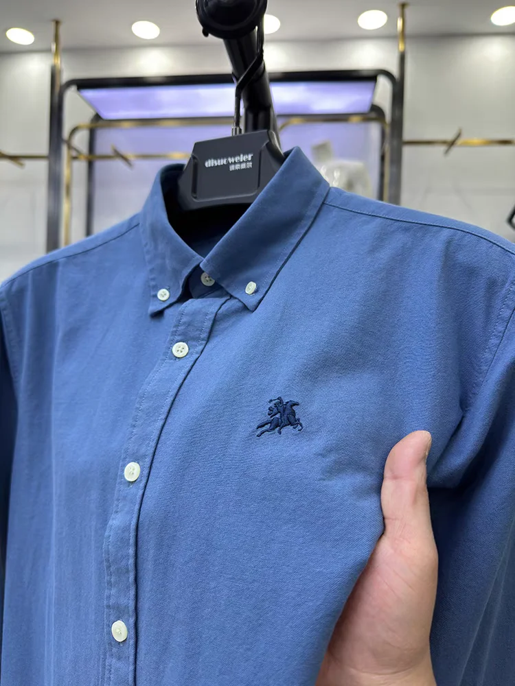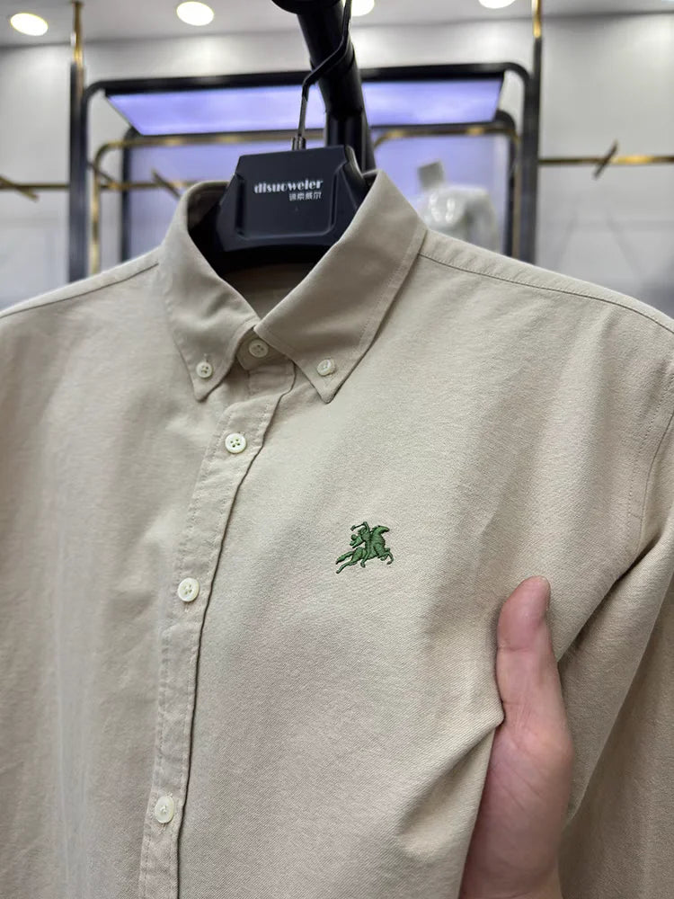 Brand Luxury Men's Shirt 100% Cotton Exquisite Embroidery Long Sleeve New Spring Korean Fashion Casual Shirt Men's Clothing 2024