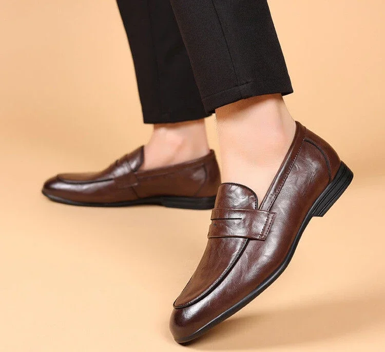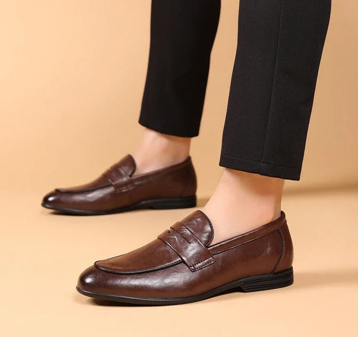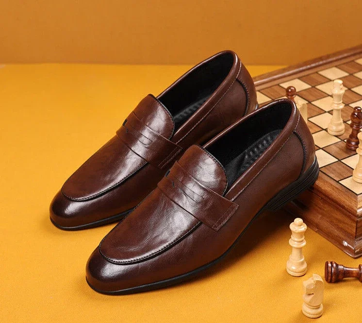 Brown Flat Leather Loafers Shoes for Men Fashion 2024 Classic Original Size Man Casual Shoe 45 Comfortable Shipping Free New In