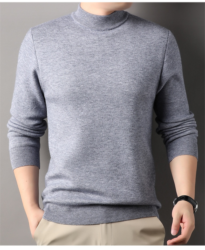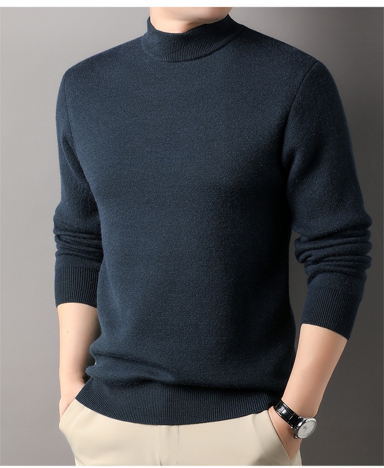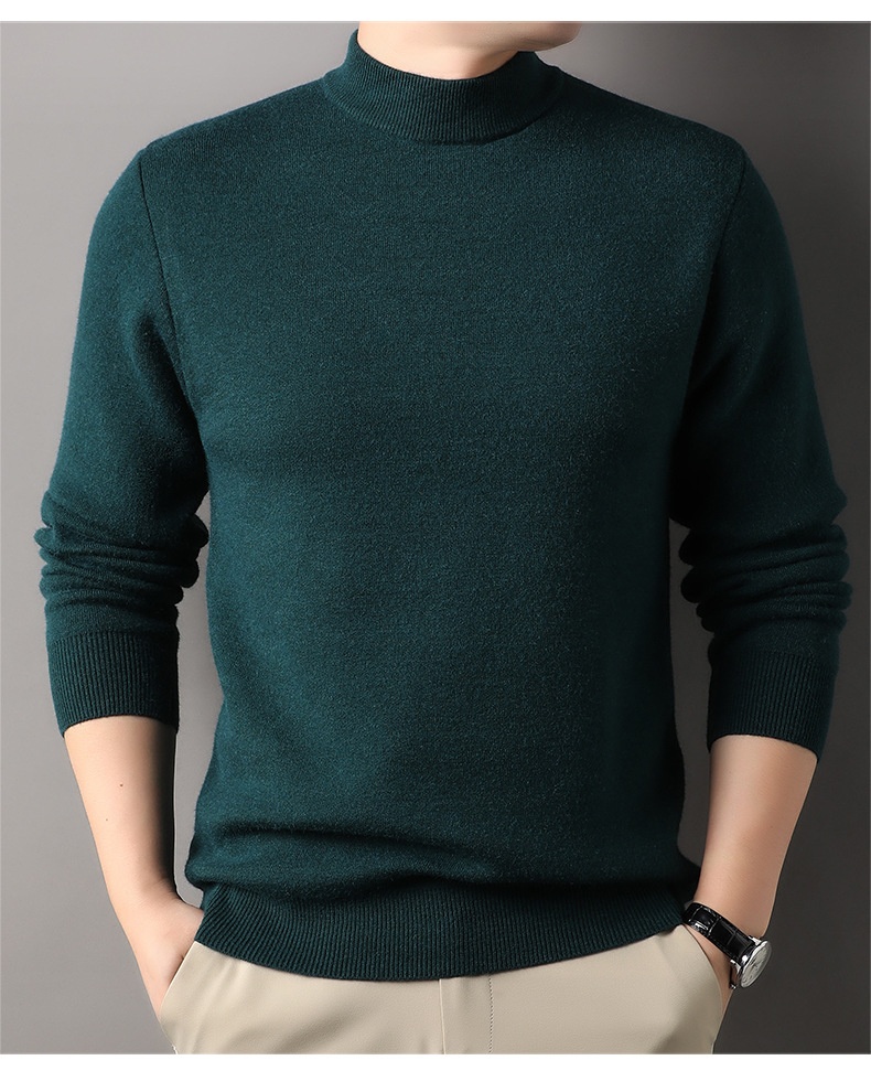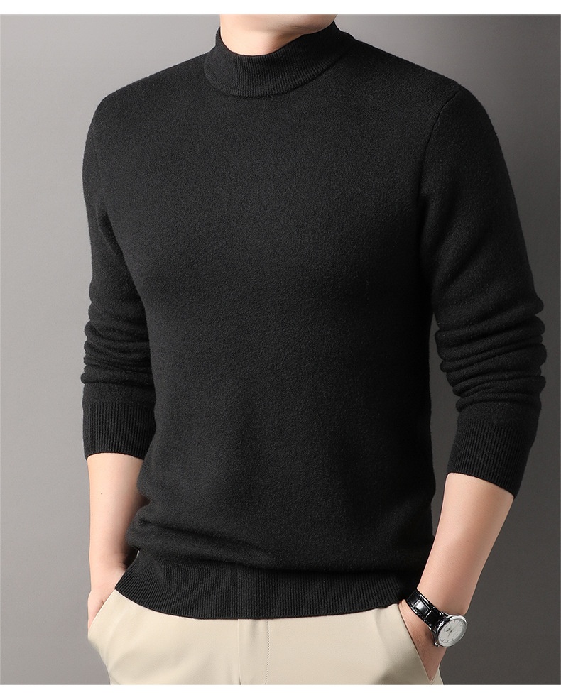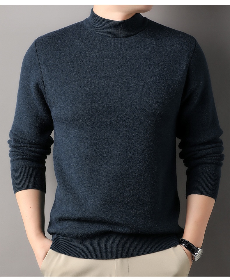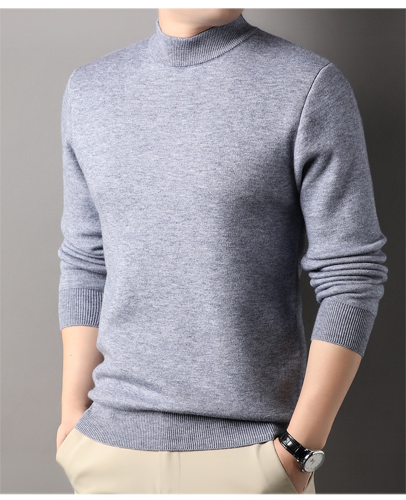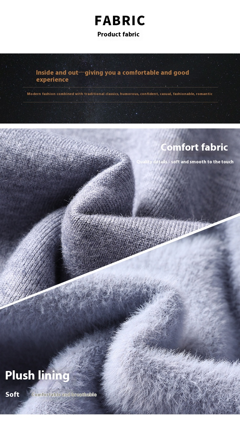 Containing Double Face Wool Leather Velvet Men's Half-high Collar Velvet Padded Sweater