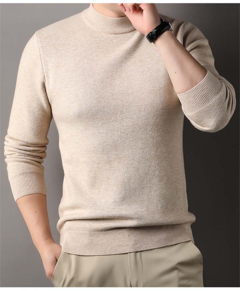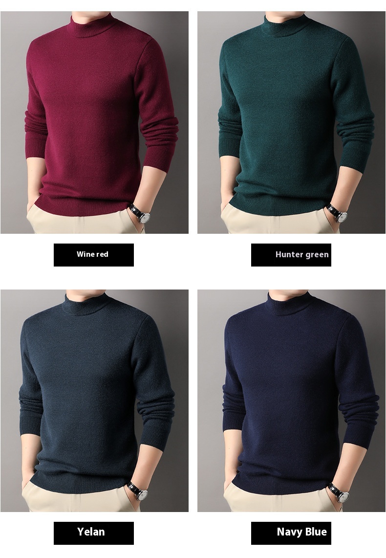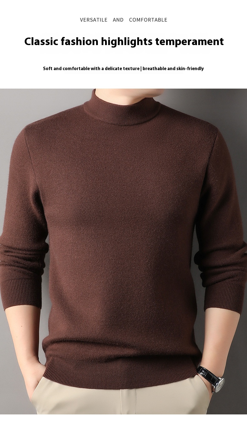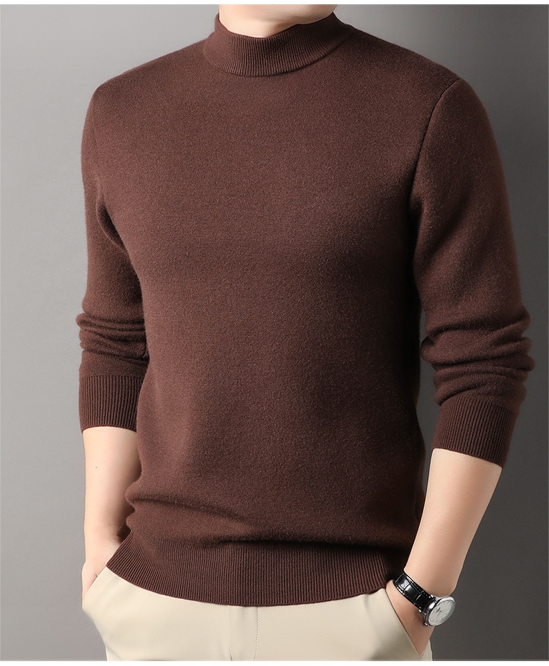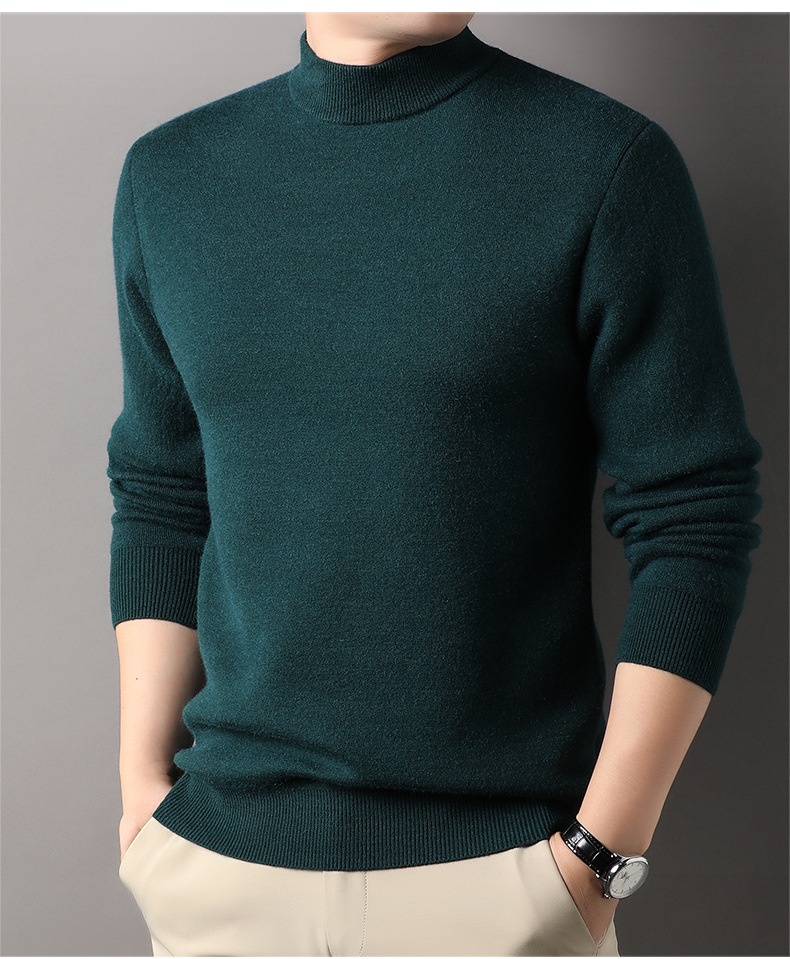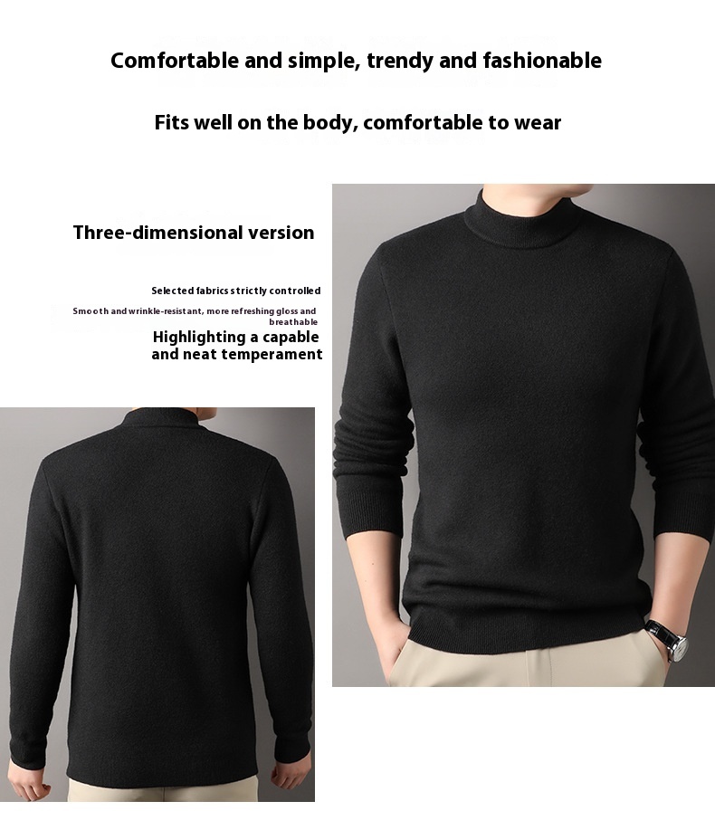 Containing Double Face Wool Leather Velvet Men's Half-high Collar Velvet Padded Sweater