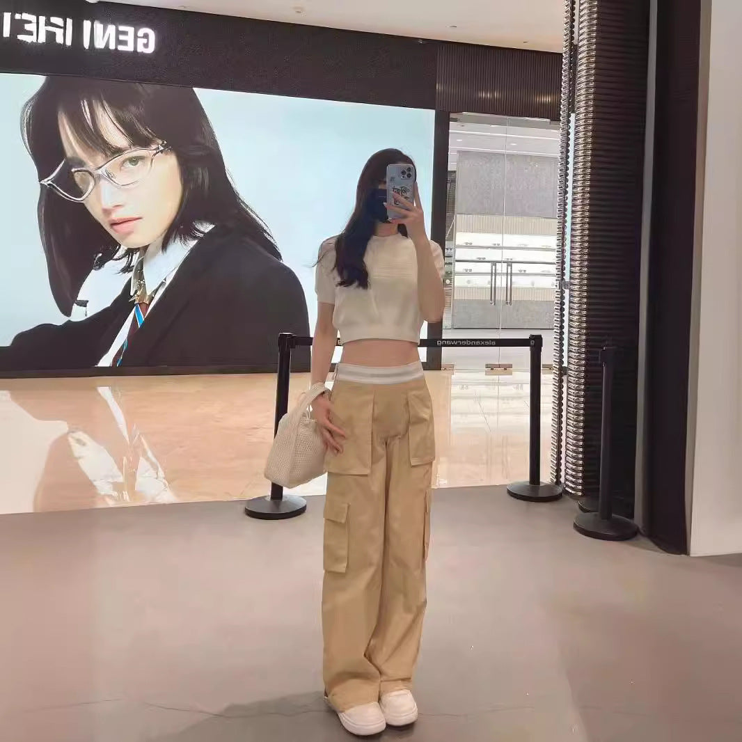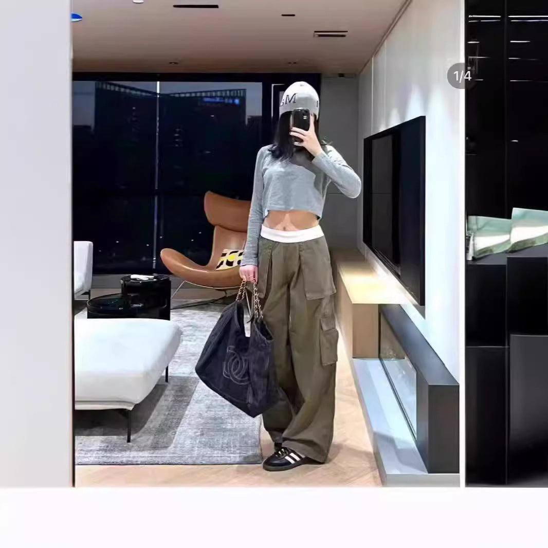 Elastic Waistband American Workwear Loose All-matching Straight Hot Girl Trousers