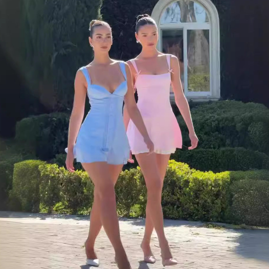 European And American Tight Lace-up Suspender Skirt Sexy Backless Hot Girl Fitted Waist Pleated