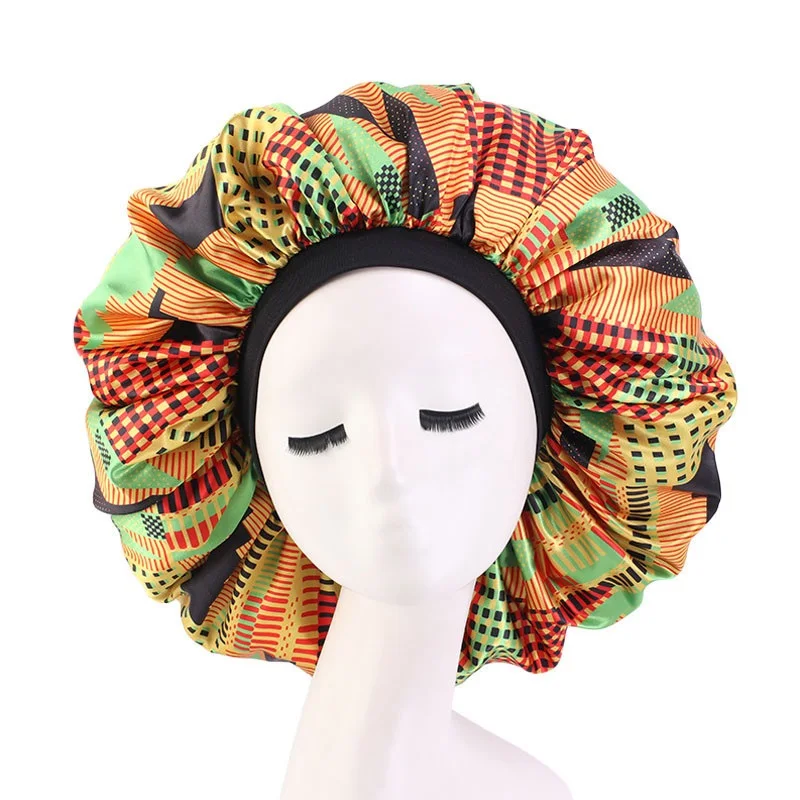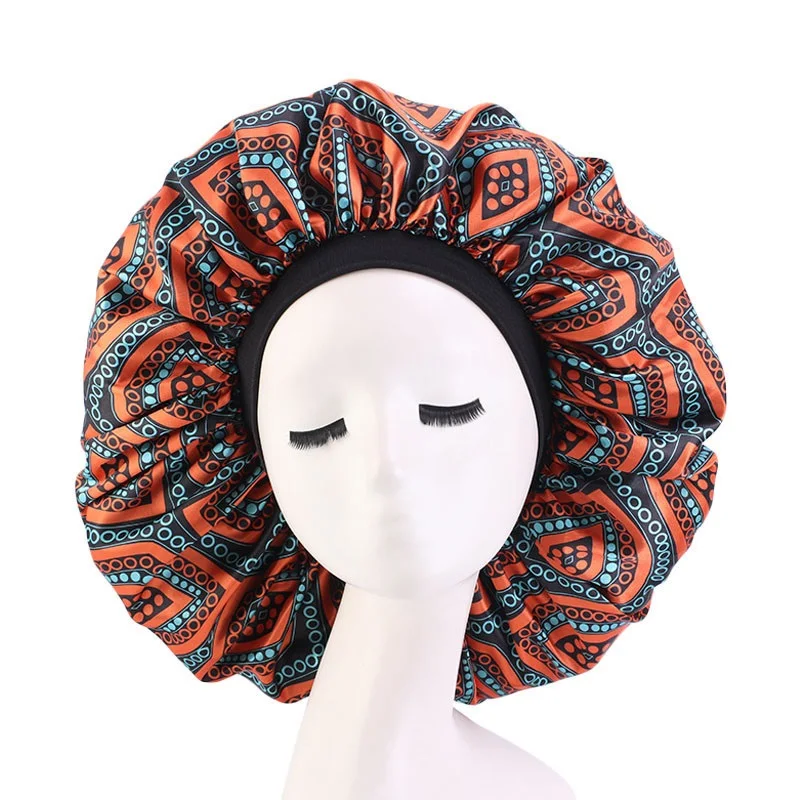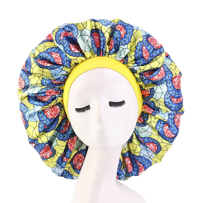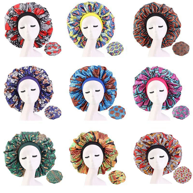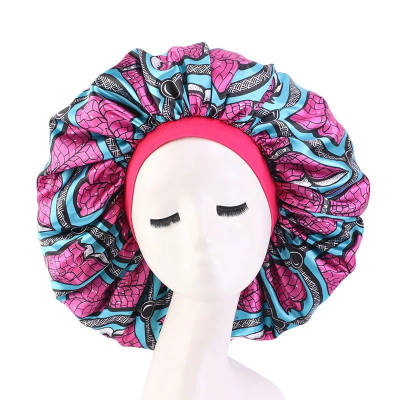Extra Large Elastic Band Women Head Wrap Satin Bonnet Sleep Cap African Pattern Print Bonnet Ladies Night Cap Turban Chemo Hat