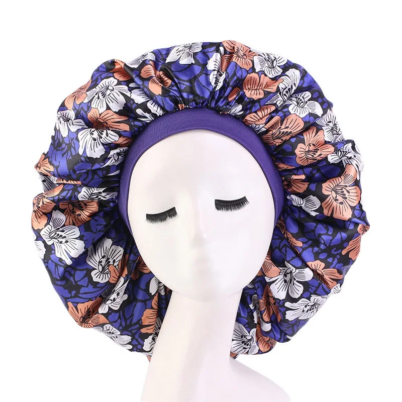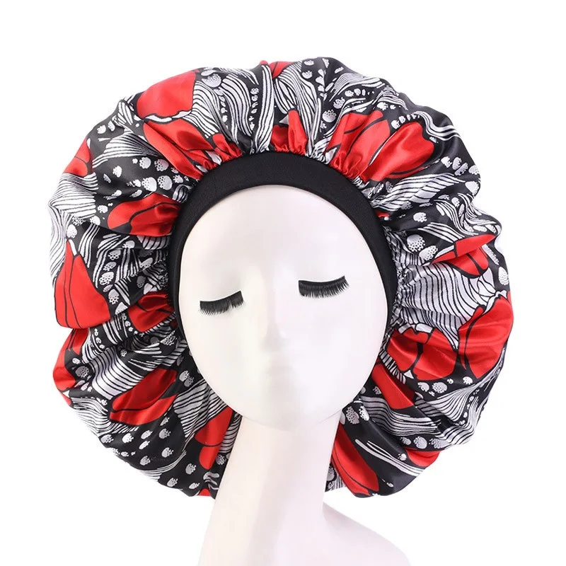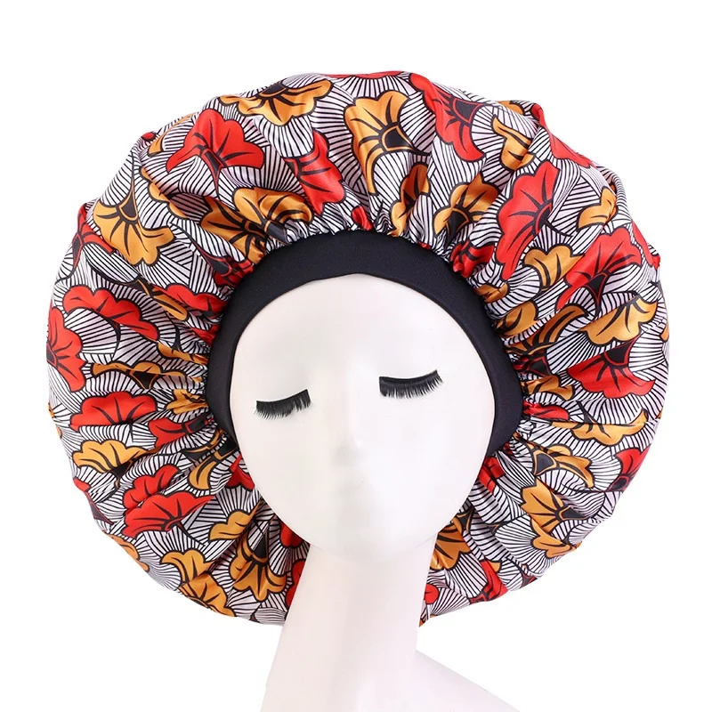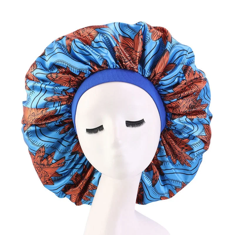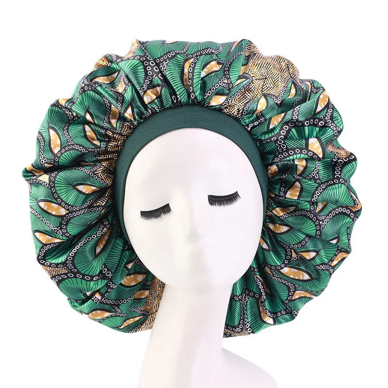 Extra Large Elastic Band Women Head Wrap Satin Bonnet Sleep Cap African Pattern Print Bonnet Ladies Night Cap Turban Chemo Hat