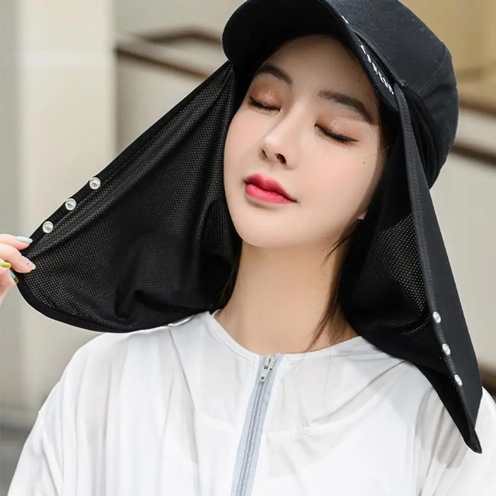 2. The hat curtain is made of sunscreen material, which can effectively block ultraviolet damage and protect the head and face from direct sunlight. The hat also has a visor that can be pulled down to cover the face, providing additional sun and wind protection.
