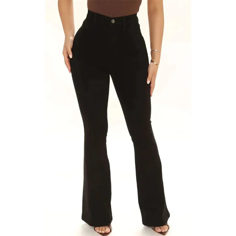 Fashion Women Commuter Slim Fit Jeans Mid Waist Micro Flared Denim Trousers Washable Floor-length Pants Female Casual Streetwear
