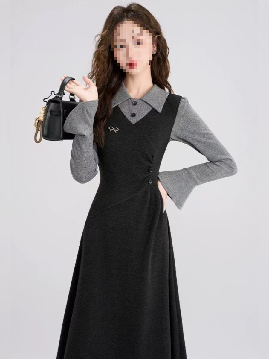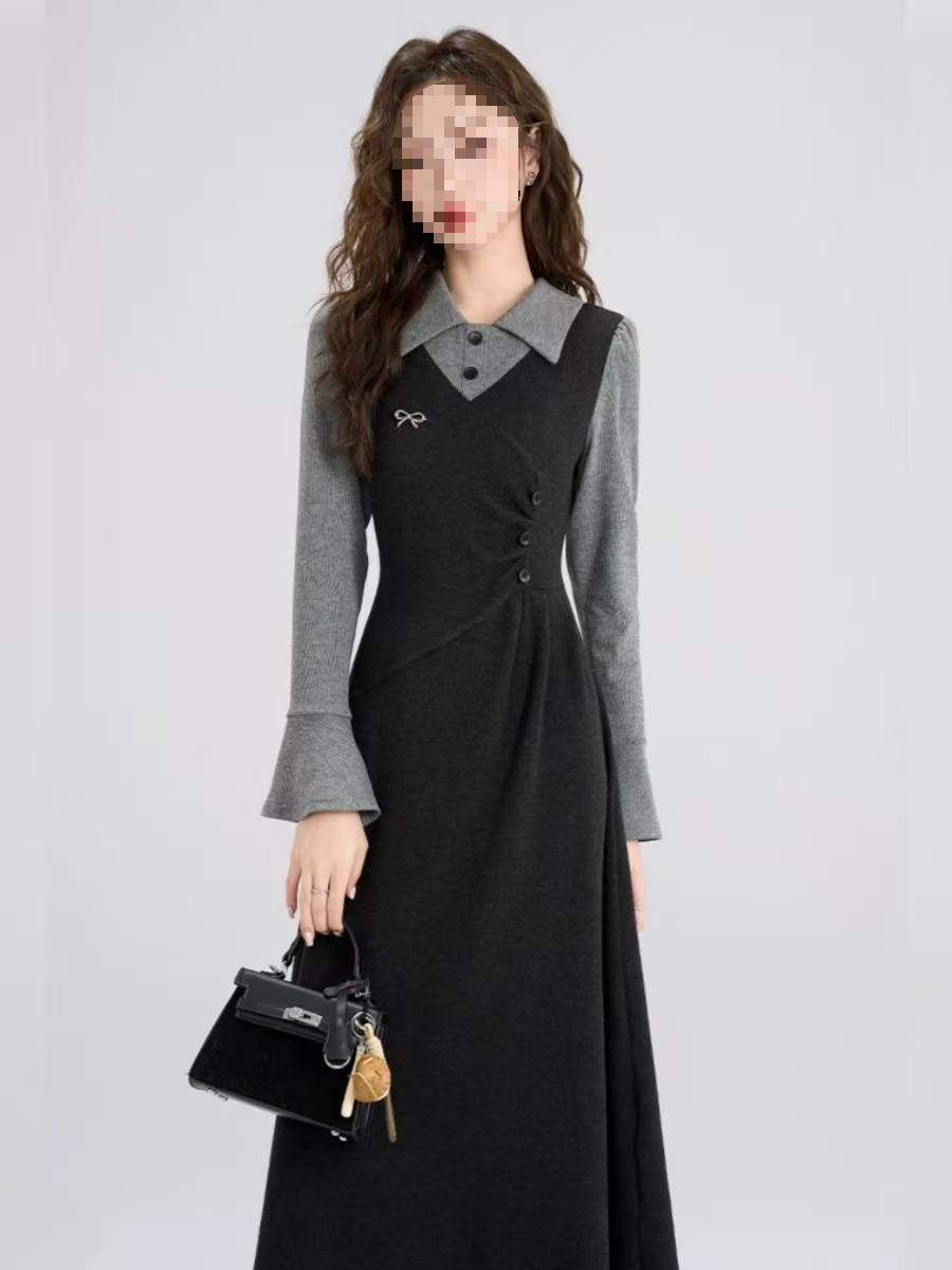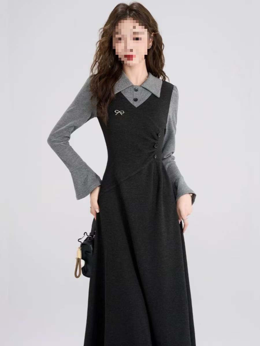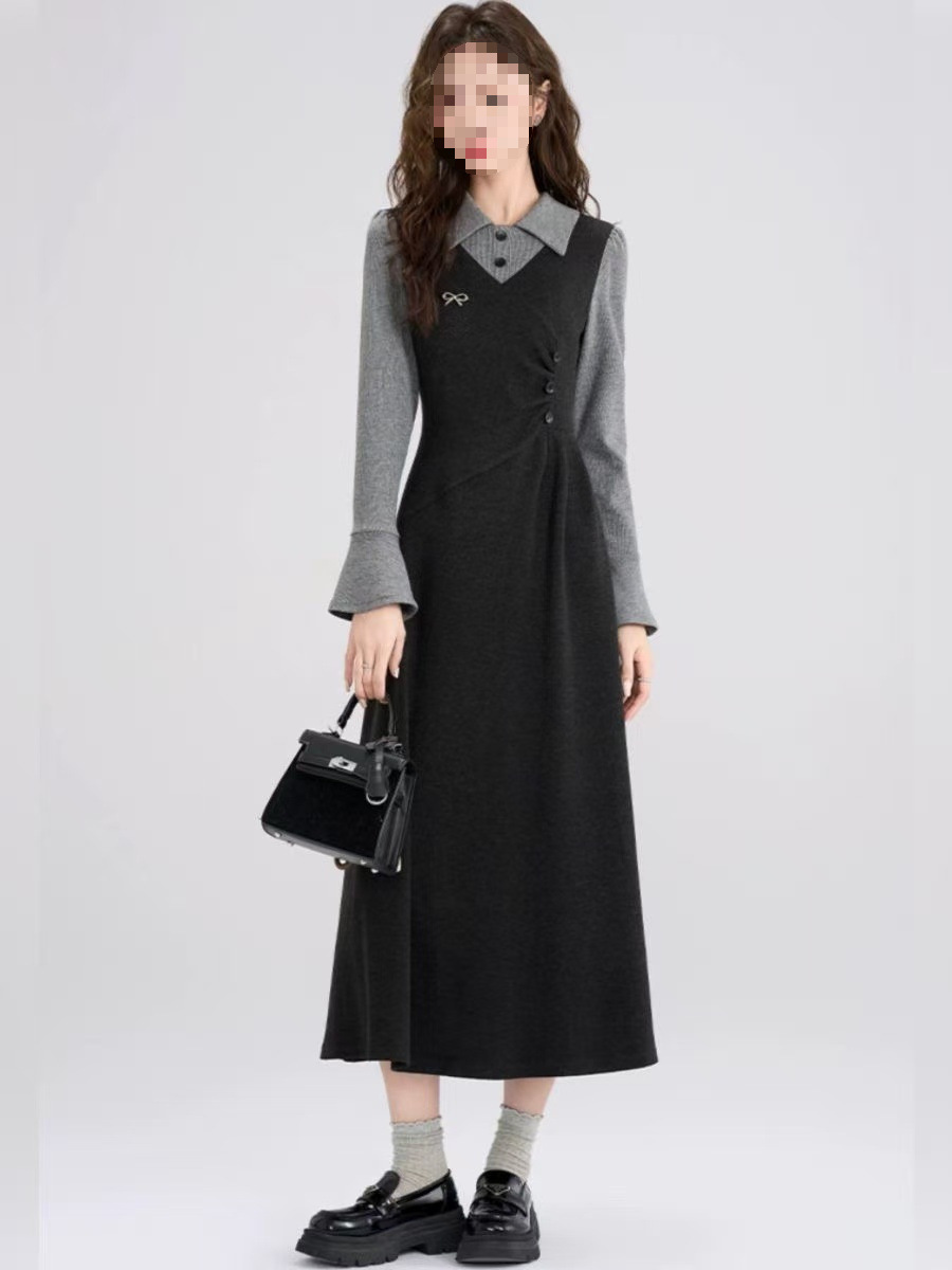 French Retro Knitted Dress High-grade Women's Large Size Long Dress