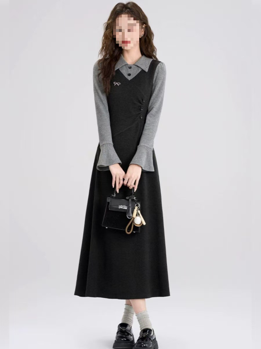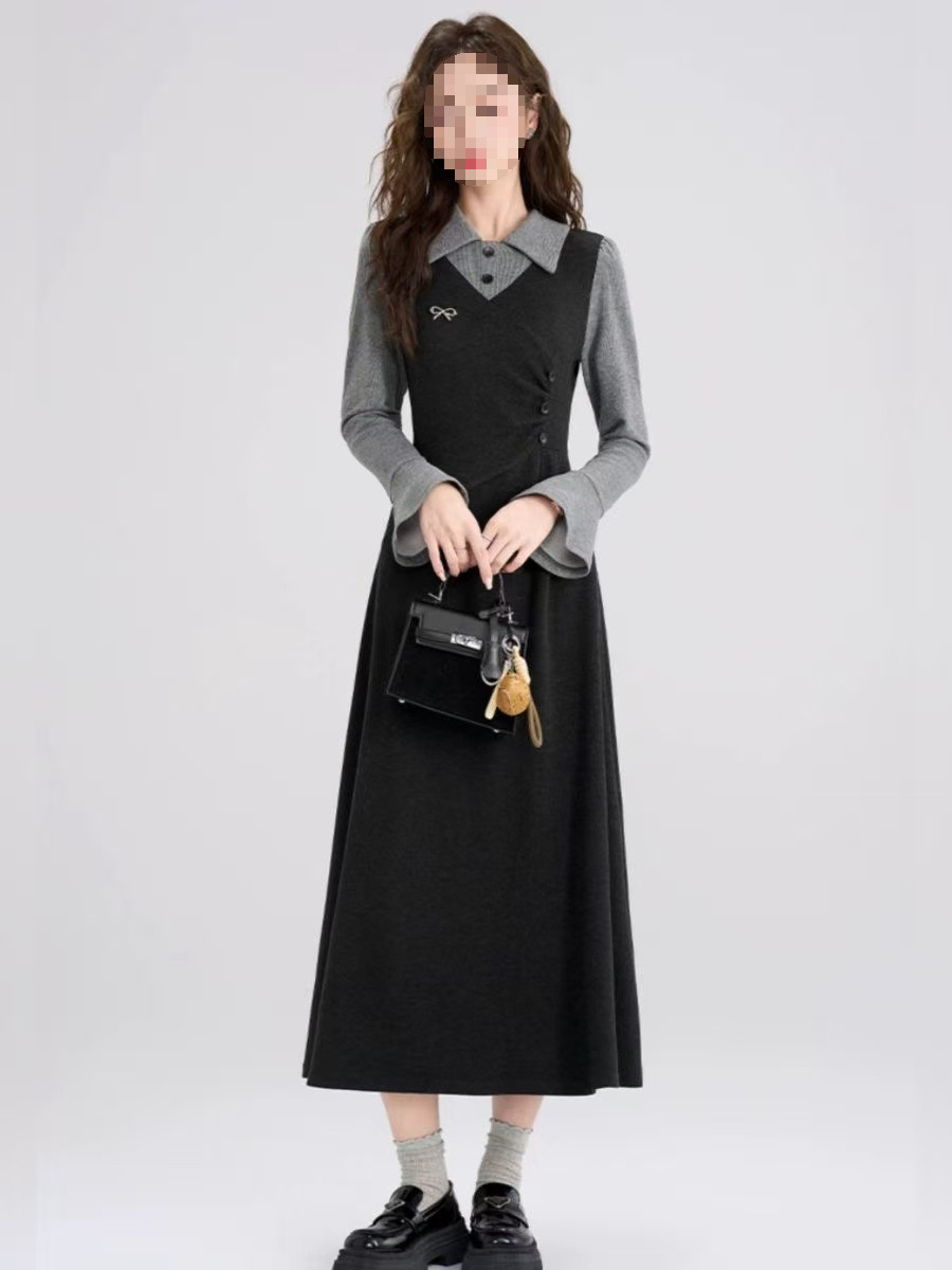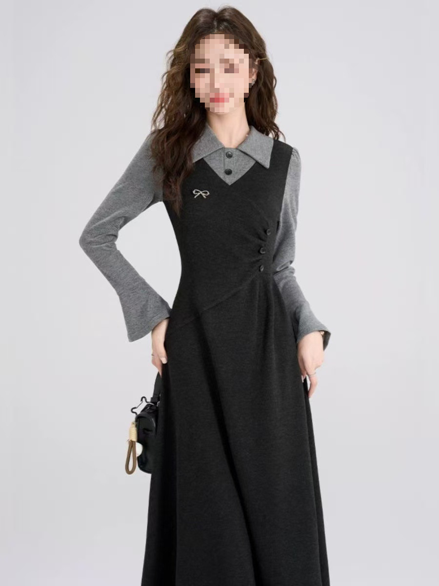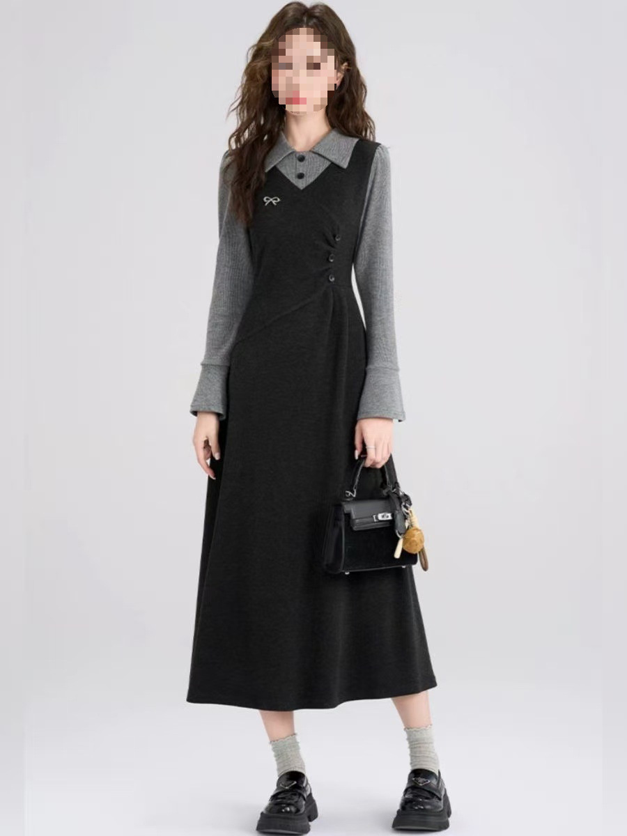 French Retro Knitted Dress High-grade Women's Large Size Long Dress