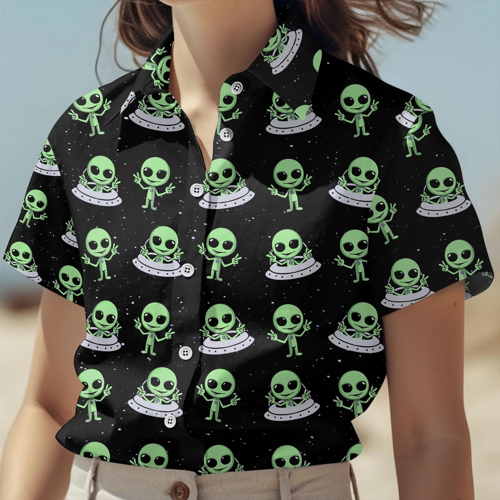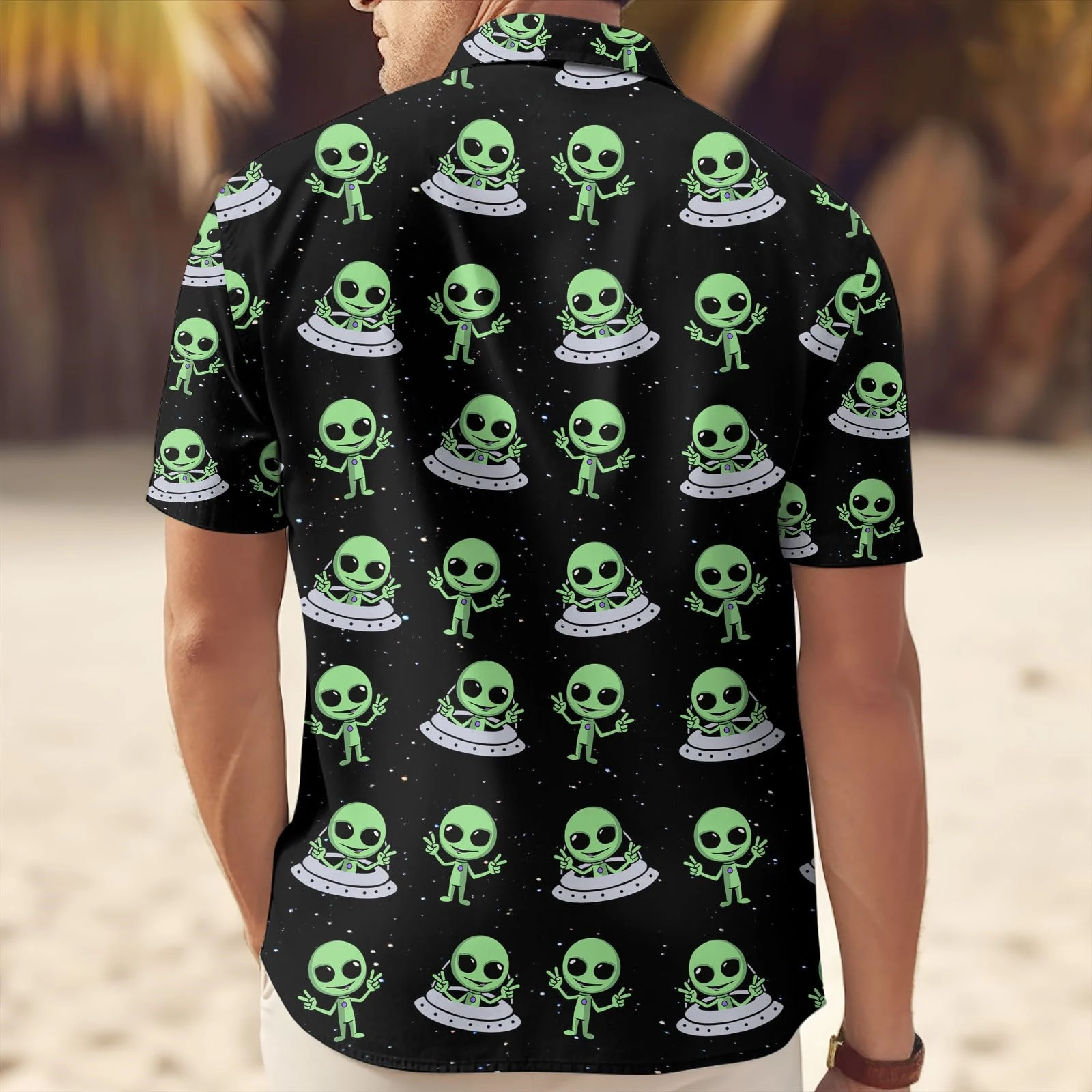 Funny Alien Graphic Shirts Oversized Men's Shirt 3d Printed Pattern Male Clothing Casual Lapel Tops Button Summer Apparel