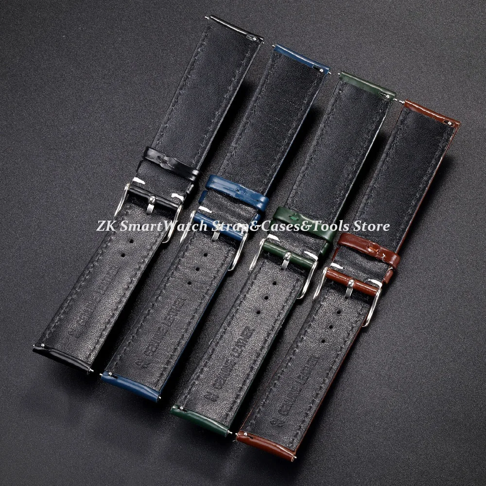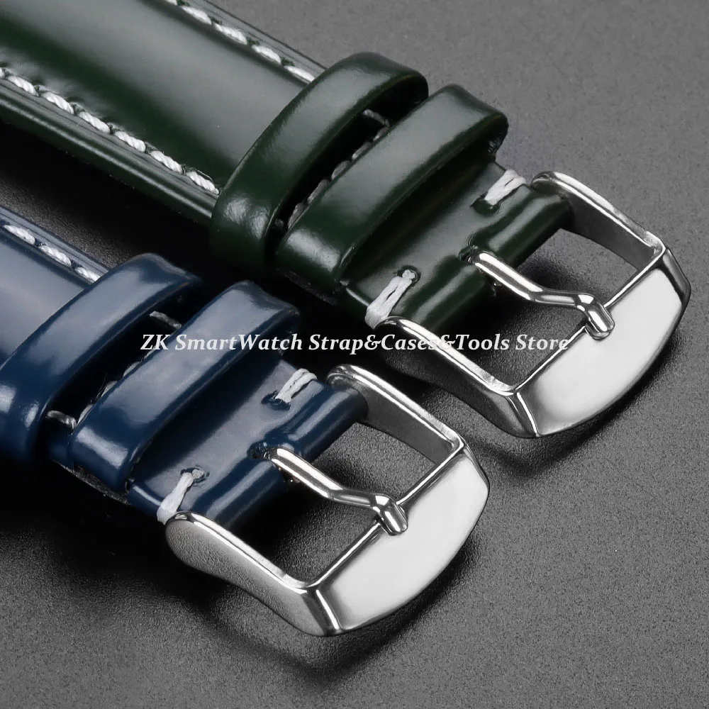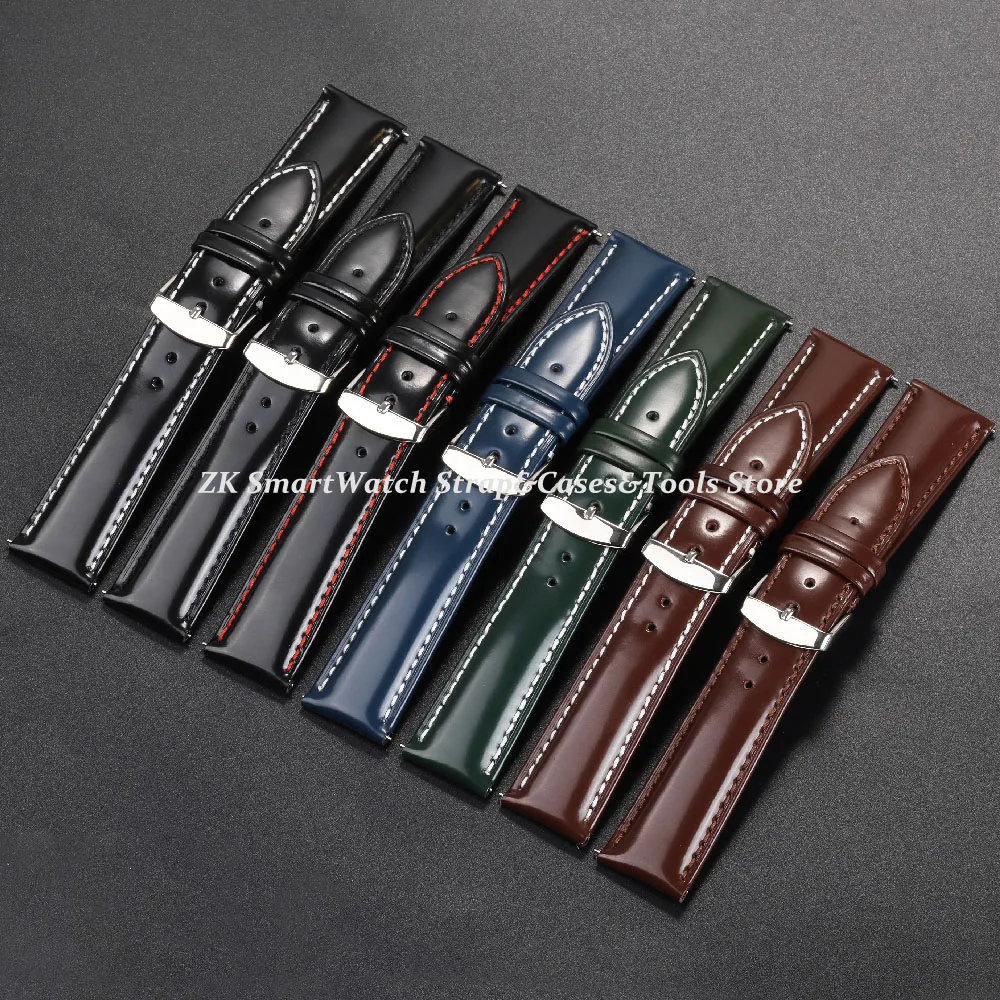 Glossy Cowhide Strap for Omega for Seiko Brown Black Green Watch Band 20mm 22mm Genuine Cordovan Wristband Men's Accessories