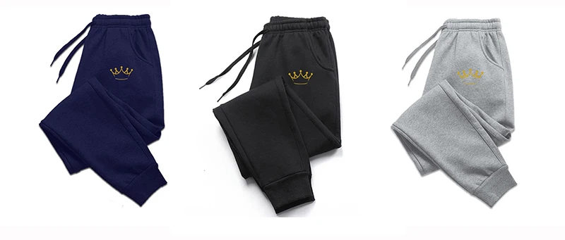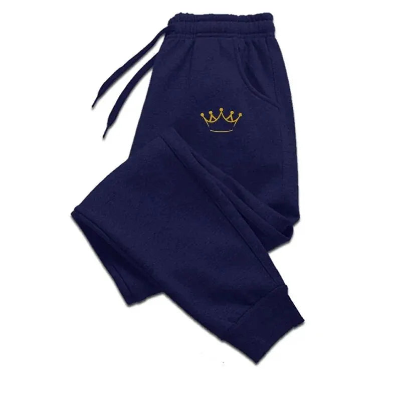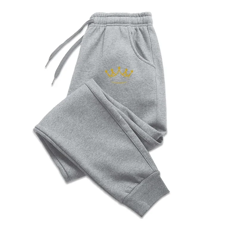 Gold Crown Printed Men's Pants Autumn And Winter Fleece Sweatpants Fashion Drawstring Casual Male Trousers Jogging Sports Pants