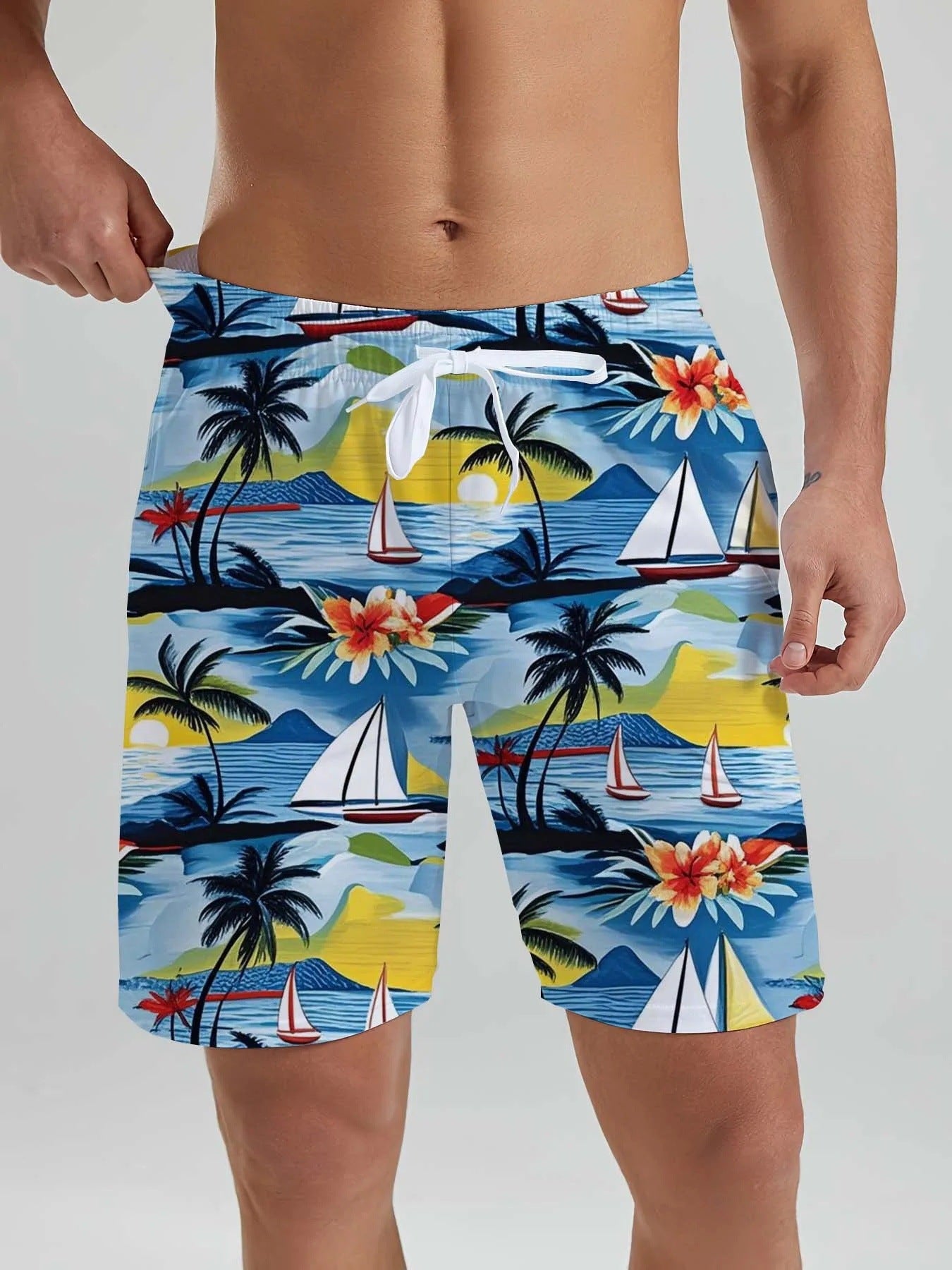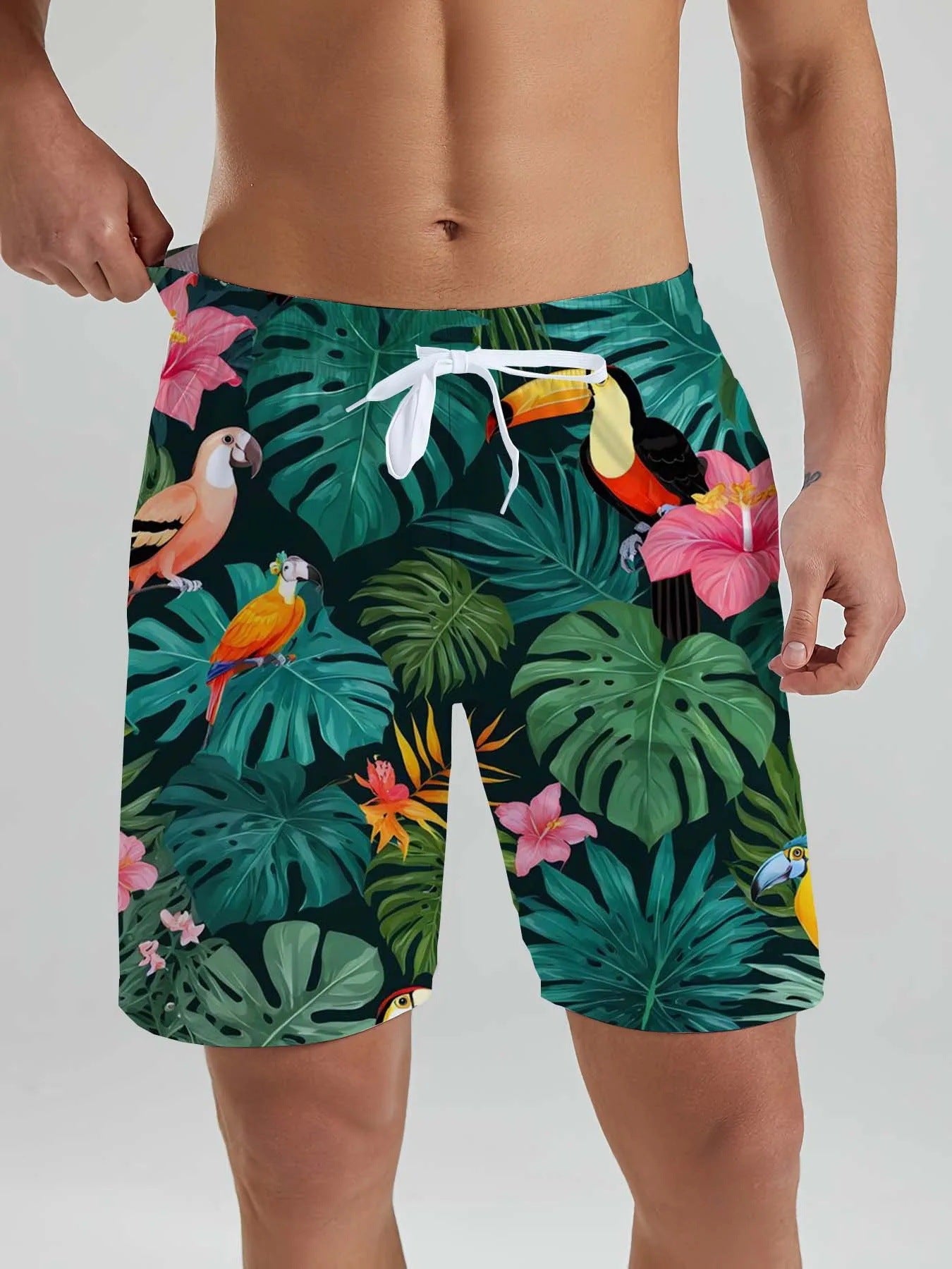 Hawaii Men's Beach Shorts Tropical Plant 3D Printing