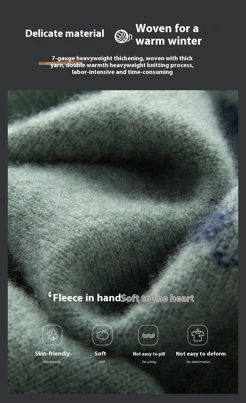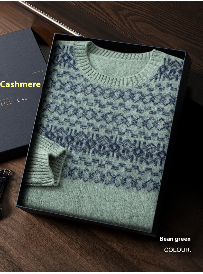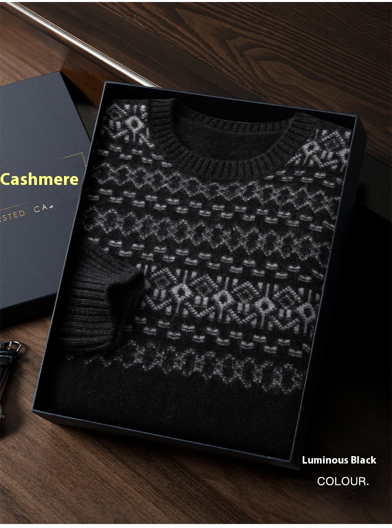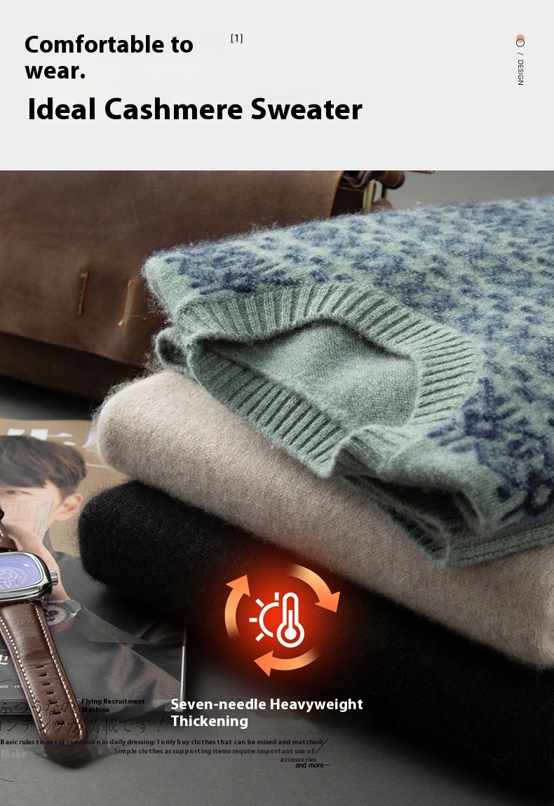 Jacquard Cashmere Sweater Men's Thickened Knitting Wool Base Shirt