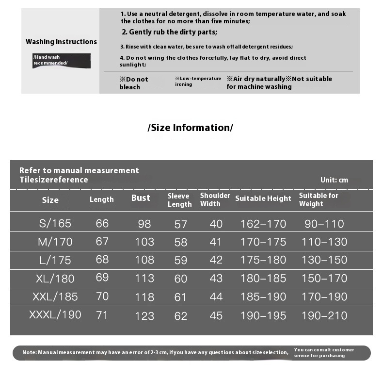 1. Asian sizes are 1 to 2 sizes smaller than European and American people. Choose the larger size if your size between two sizes. Please allow 2-3cm differences due to manual measurement. 2. Please check the size chart carefully before you buy the item, if you don't know how to choose size, please contact our customer service. 3.As you know, the different computers display colors differently, the color of the actual item may vary slightly from the following images.