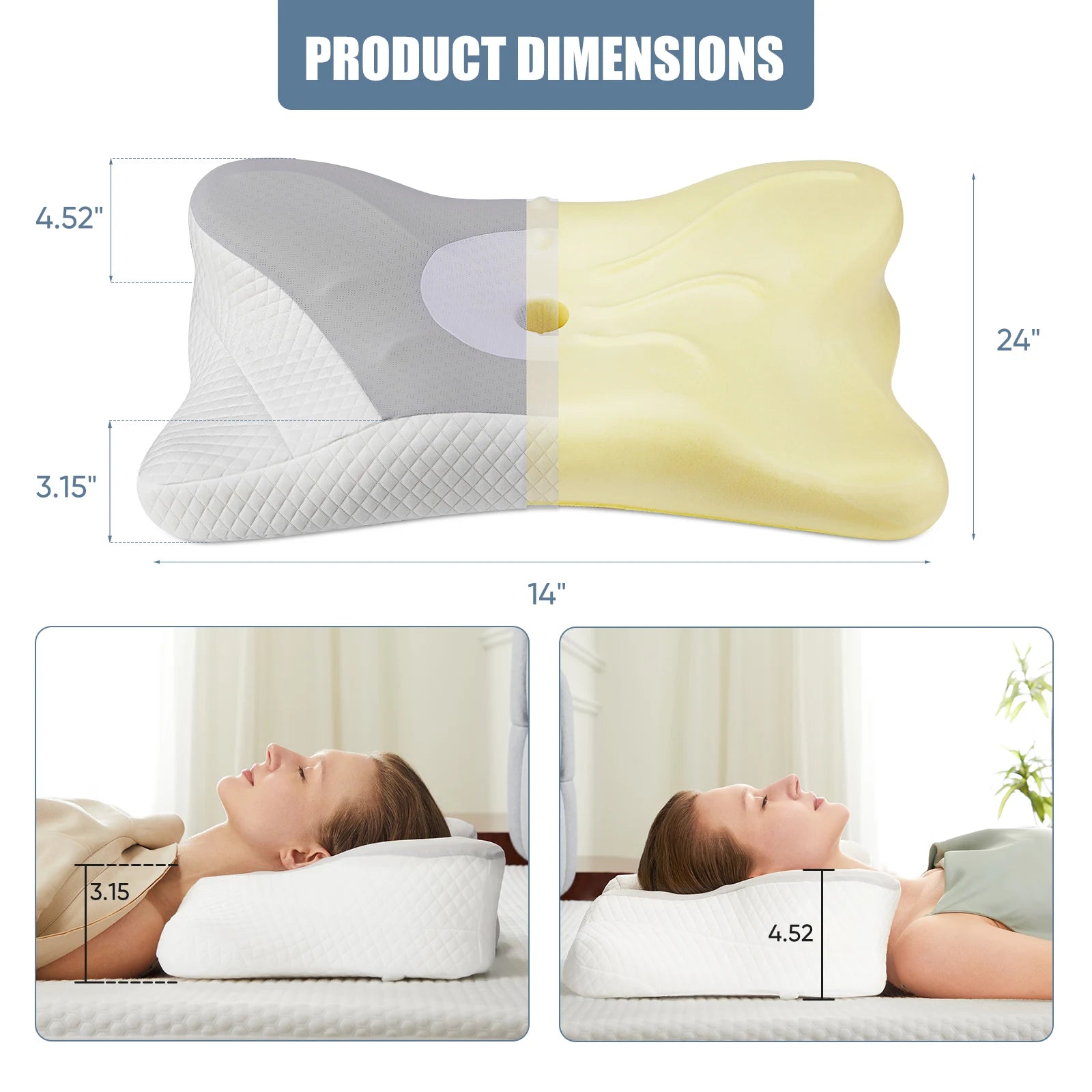 【 User-friendly Design】According to your sleeping habits, our contour pillow are specially set in 2 different heights (4.2" & 3.15" ), and the butterfly shaped pillow has an armrest area to allow stomach sleepers to sleep more comfortably, and is also great for back sleepers and side sleepers.