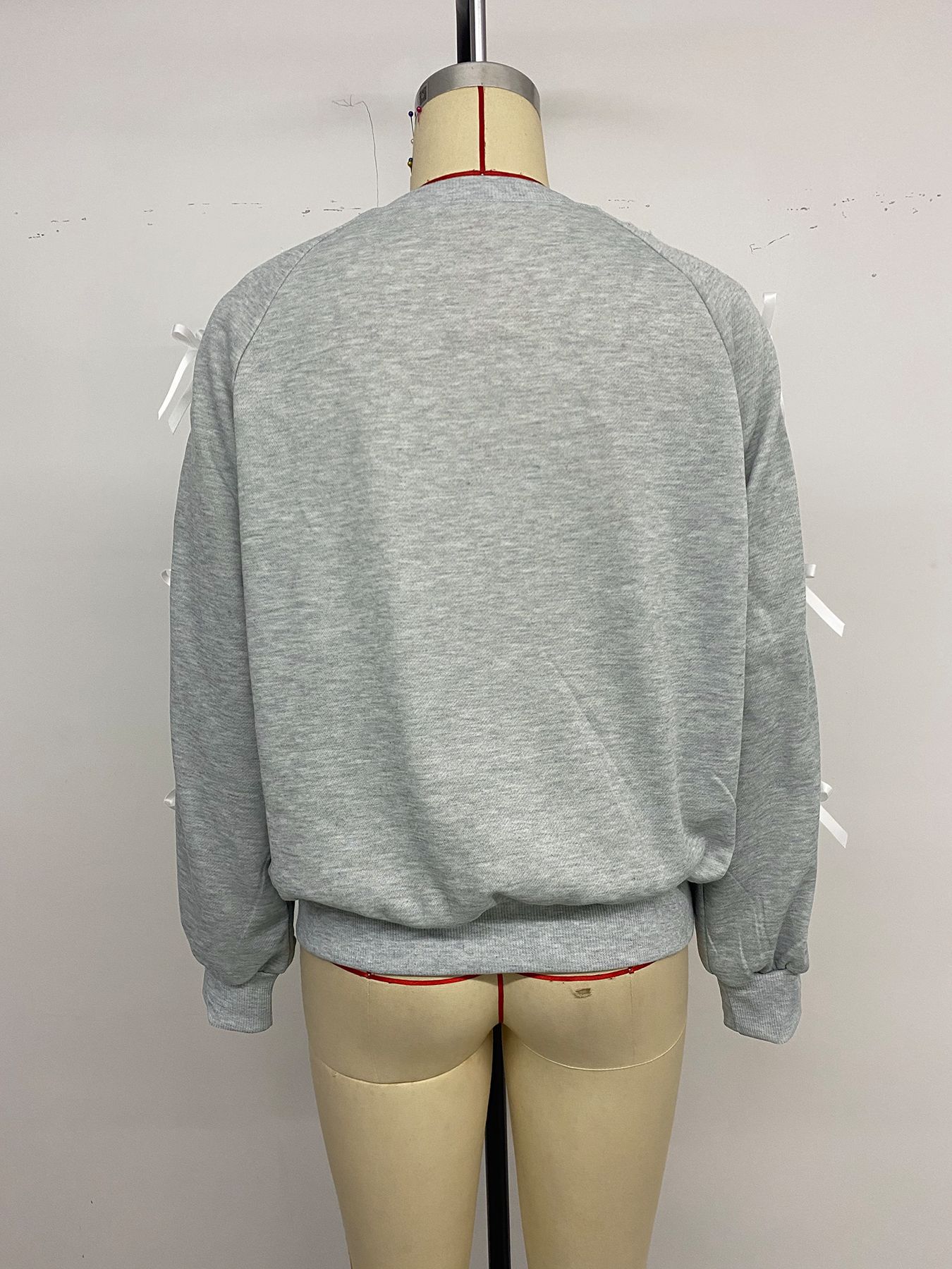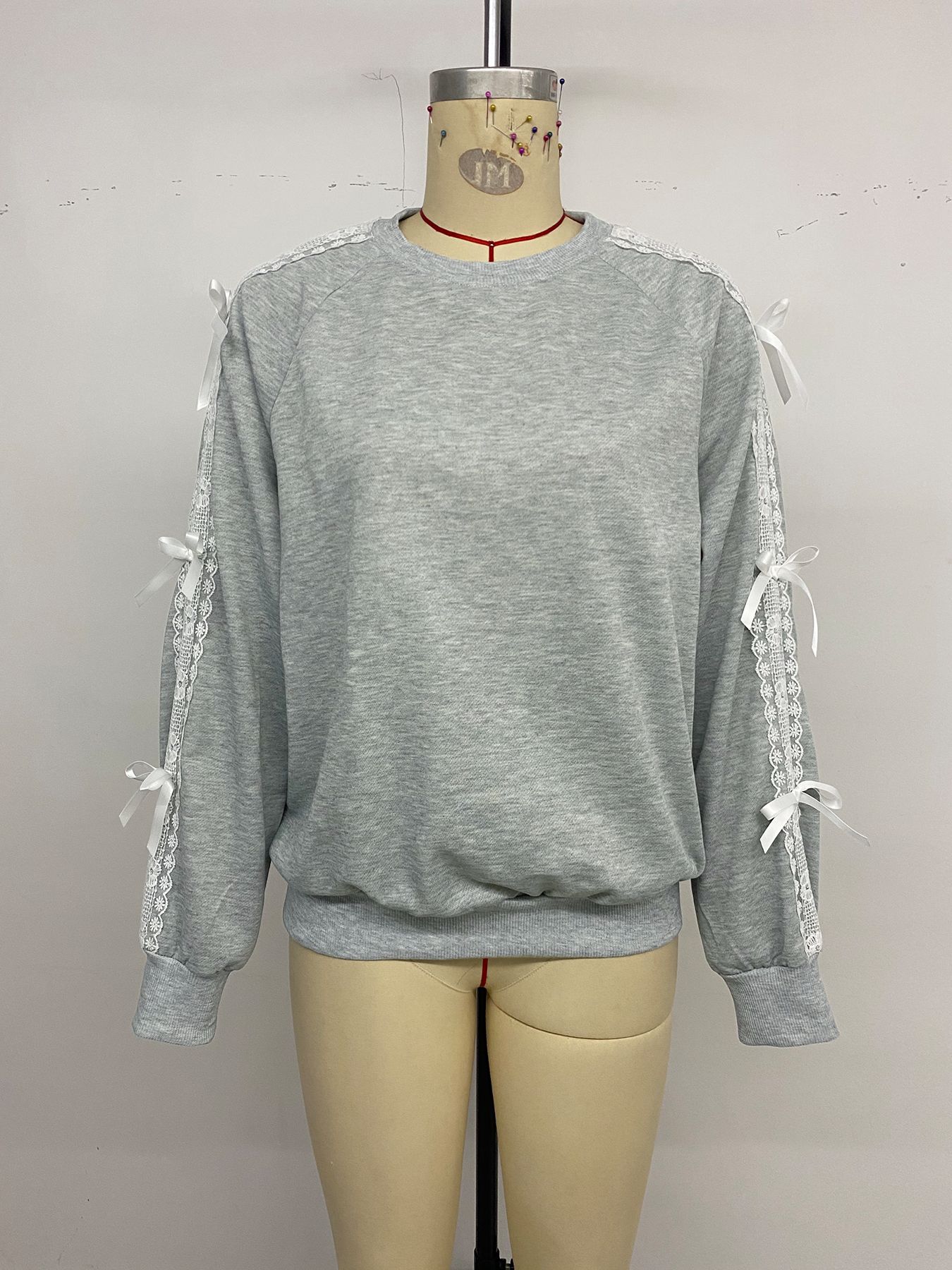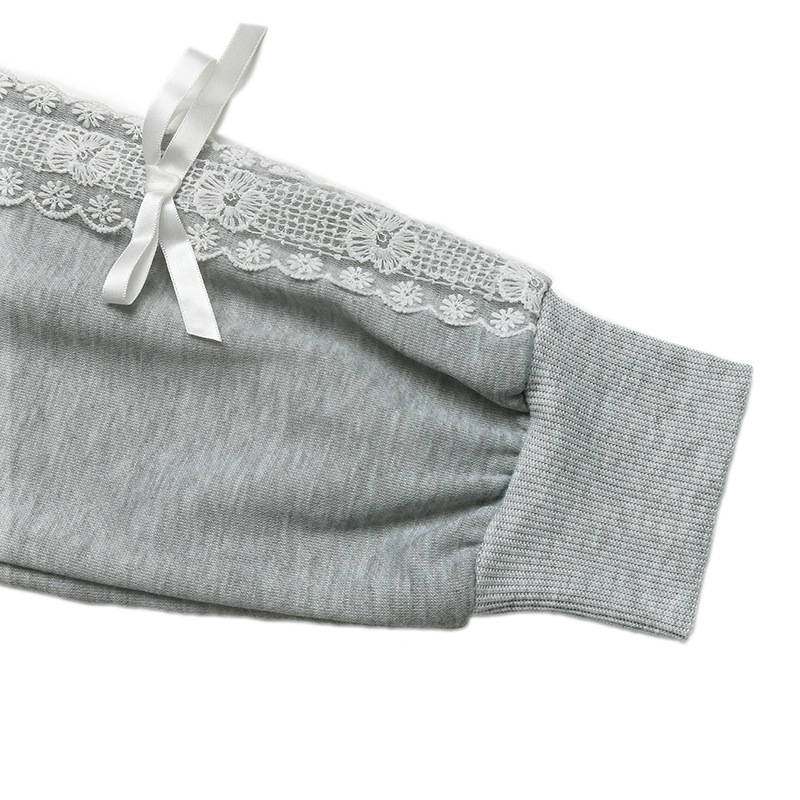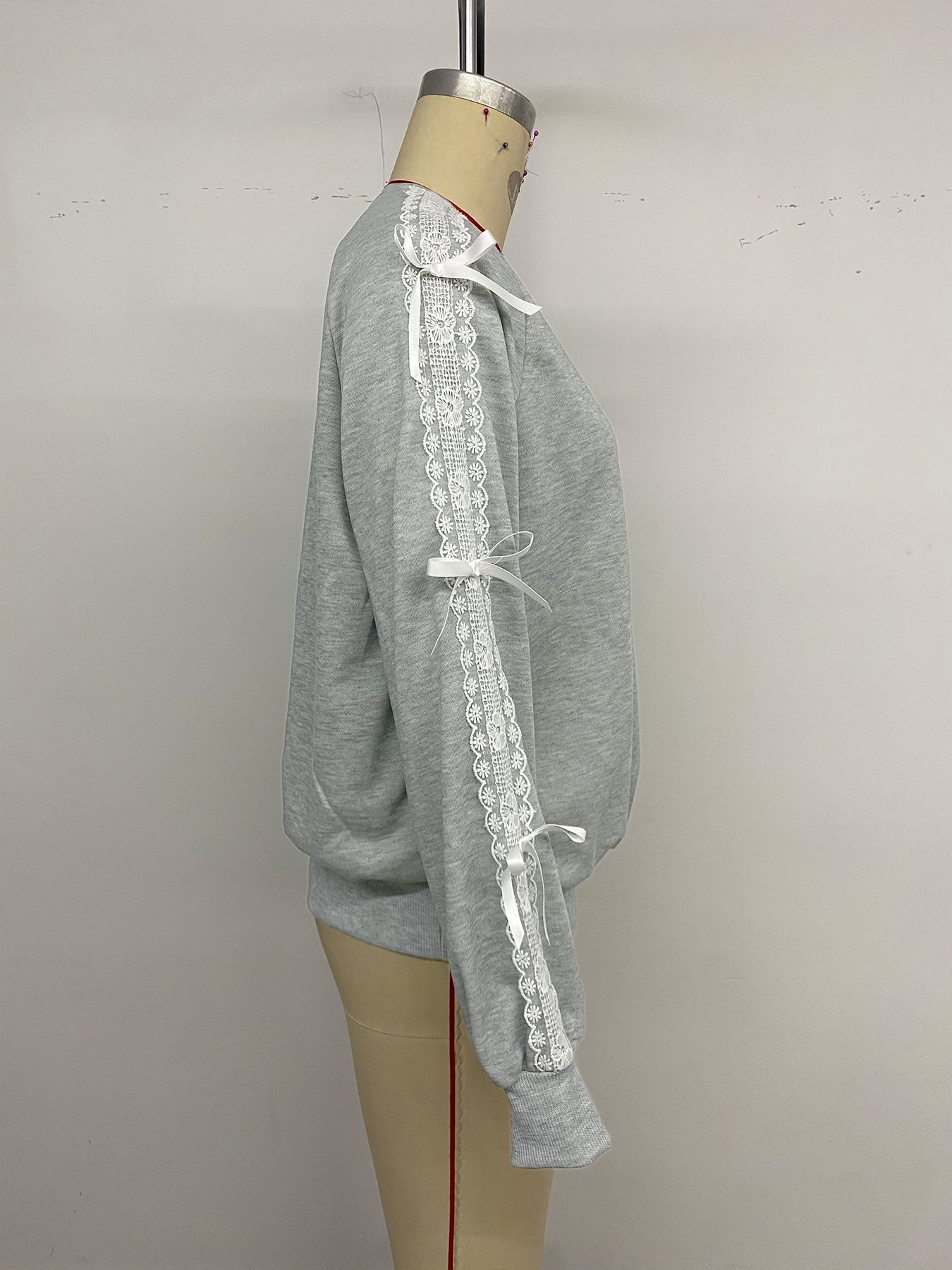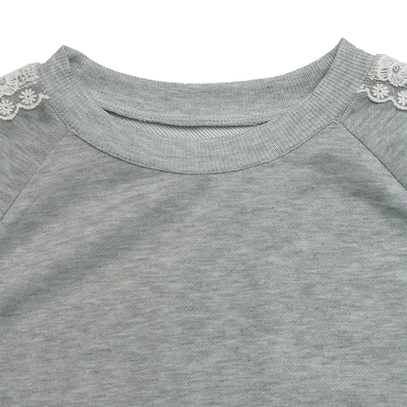 Lace Stitching Gray Long Sleeves Autumn Sweater