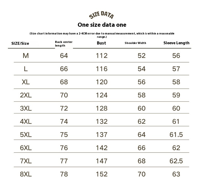 Size: M,L,XL,2XL,3XL,4XL,5XL,6XL,7XL,8XL