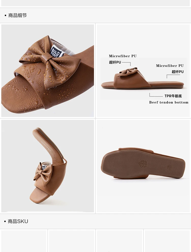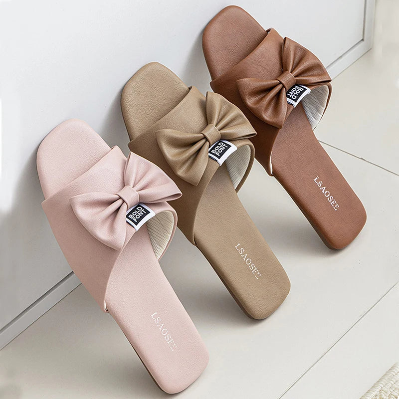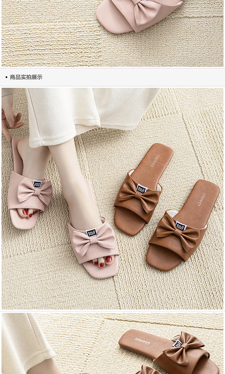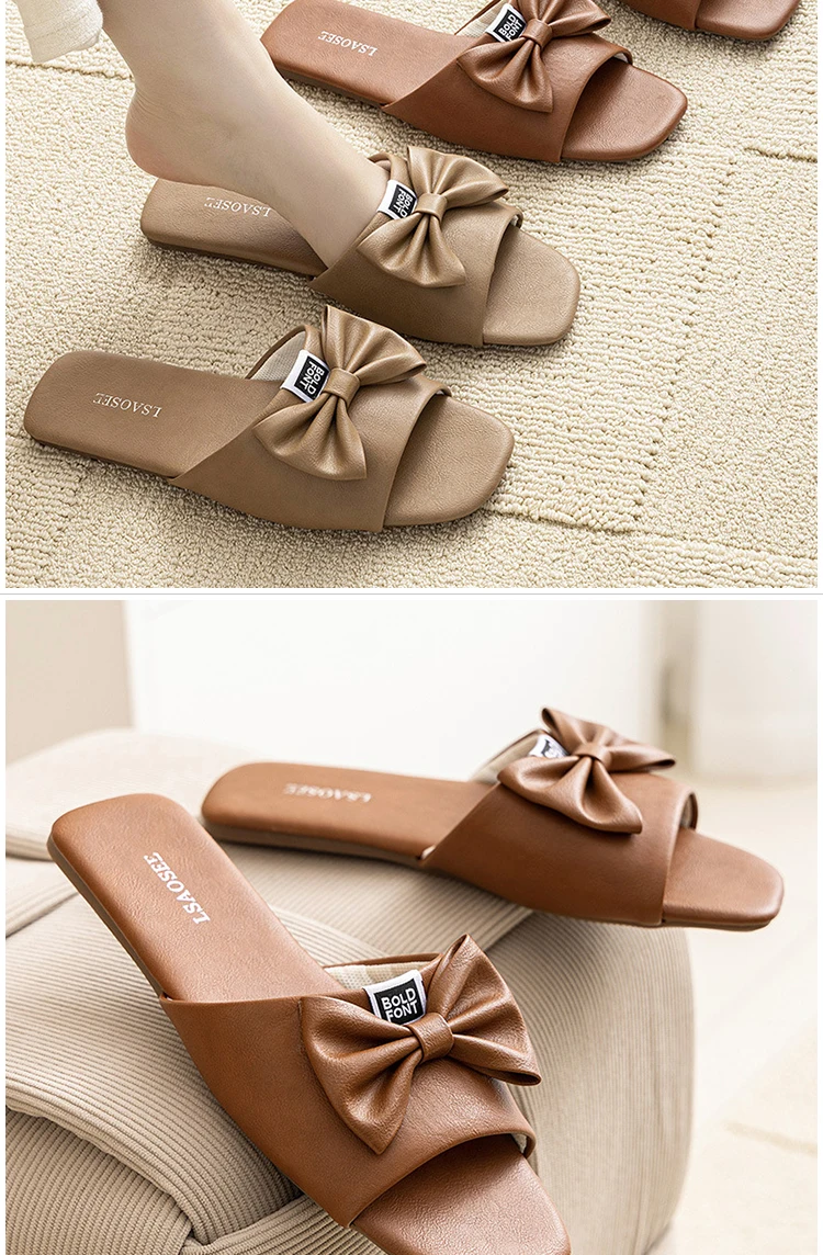 Leather Slippers Women Wear Office Slippers in Spring and Summer, Ladies Indoor Home Non-slip Tendon Bottom.