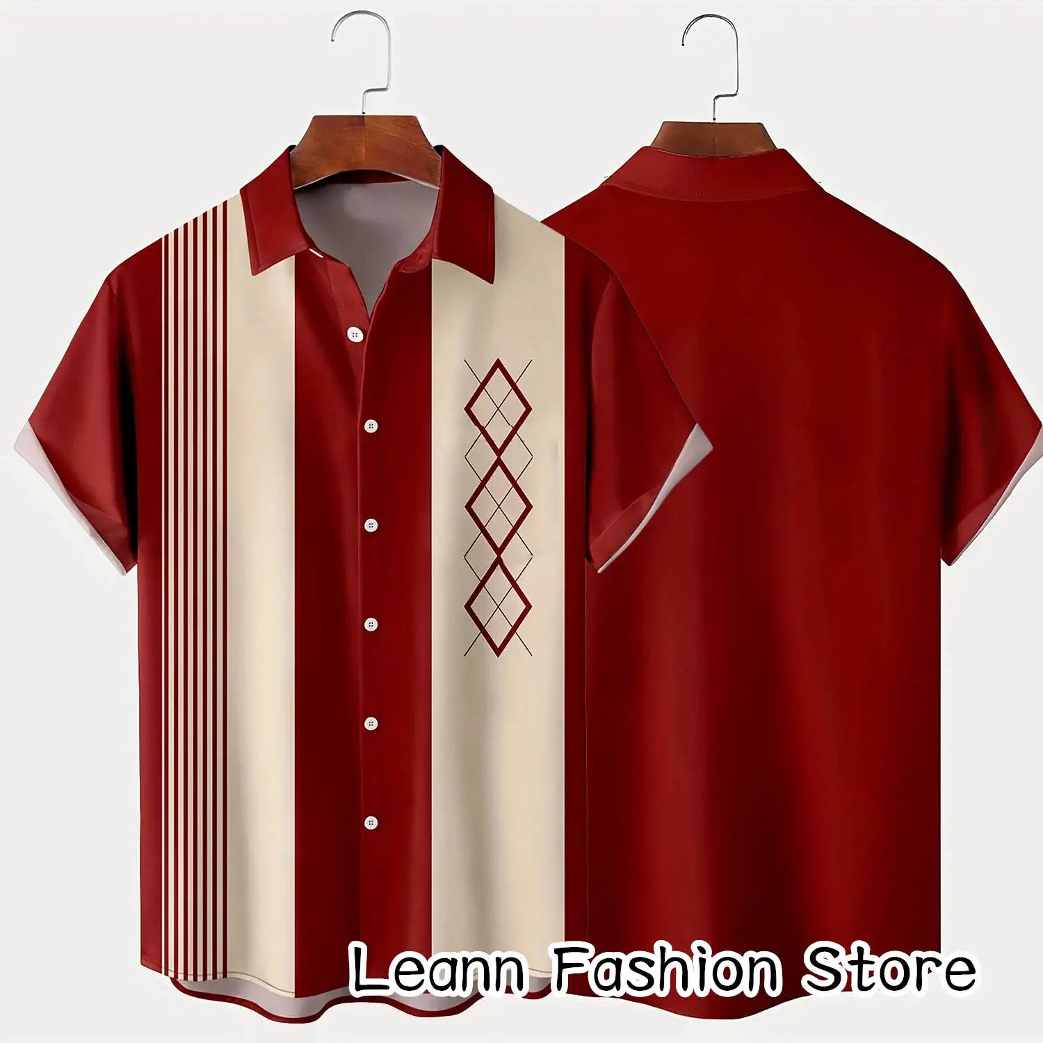 Men Summer Poker Symbol Stripe Print Shirt Casual Beach Short Sleeve Clothing Male Button Lapel Collar Fashion Leisurewear