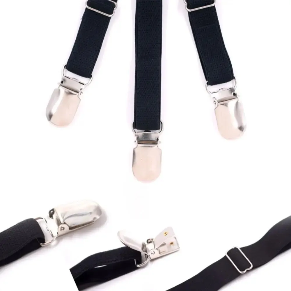 Men's Shirt Garters Adjustable Elastic Leg Suspenders Shirt Holders Straps Belt Crease-Resistance Non-slip Locking Clamps Black