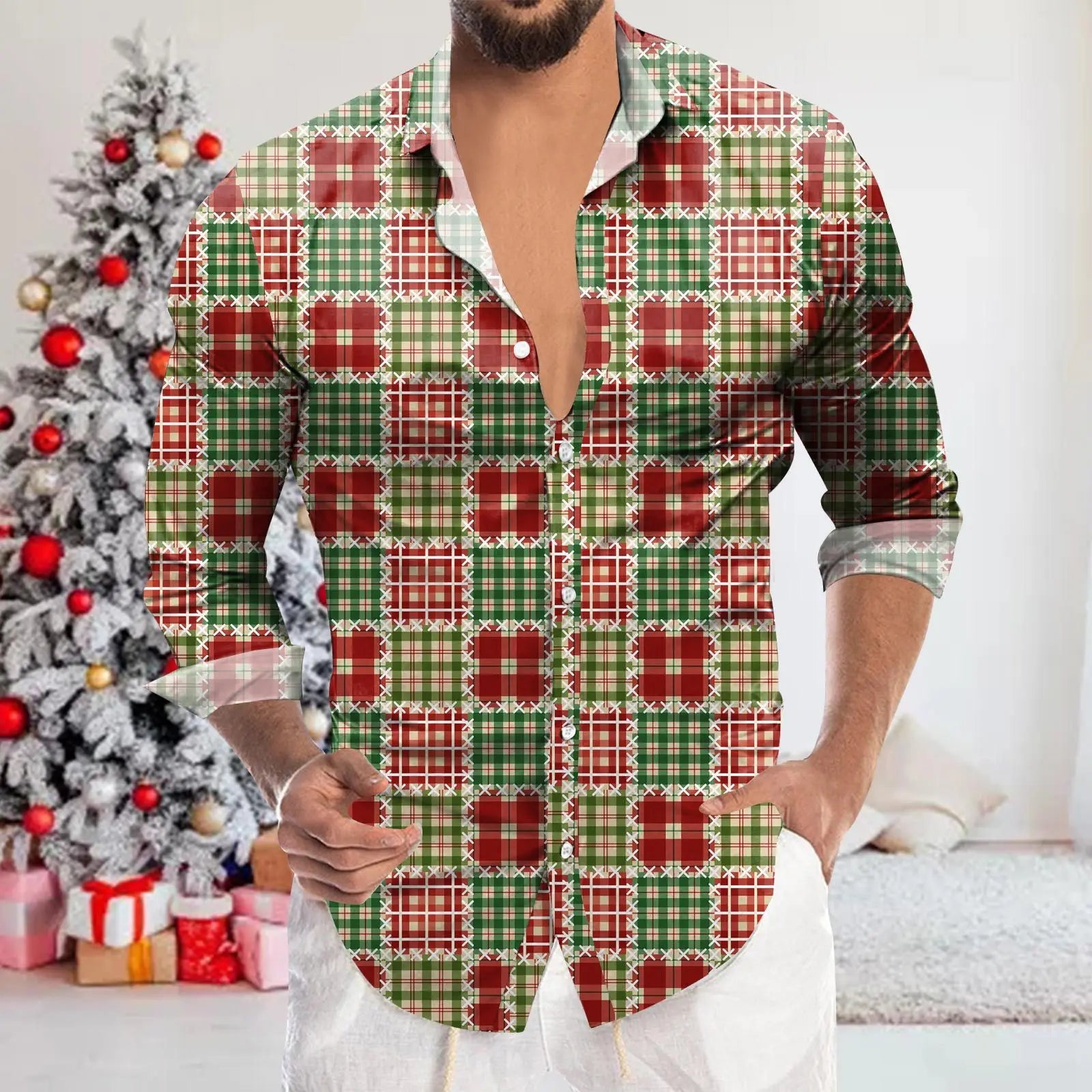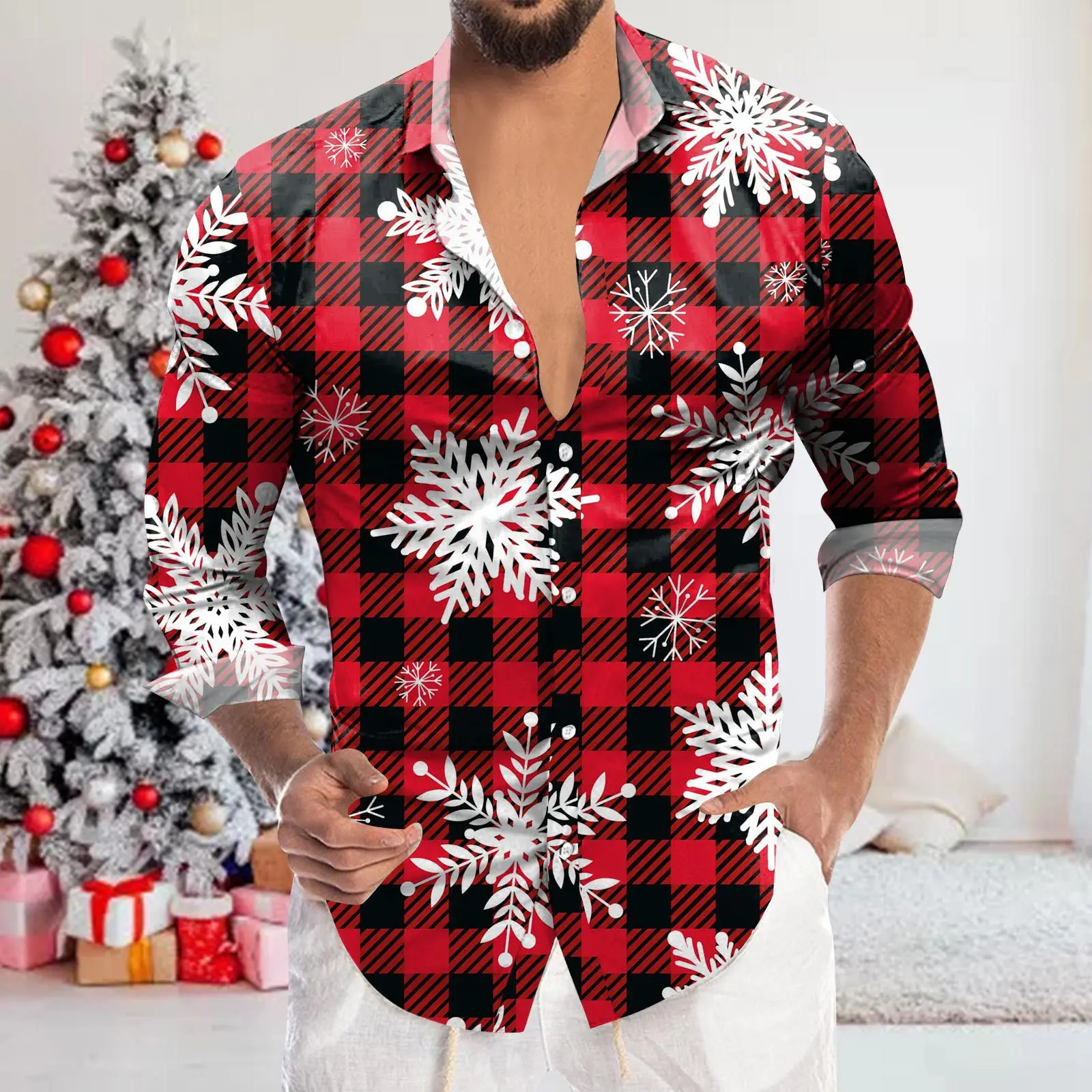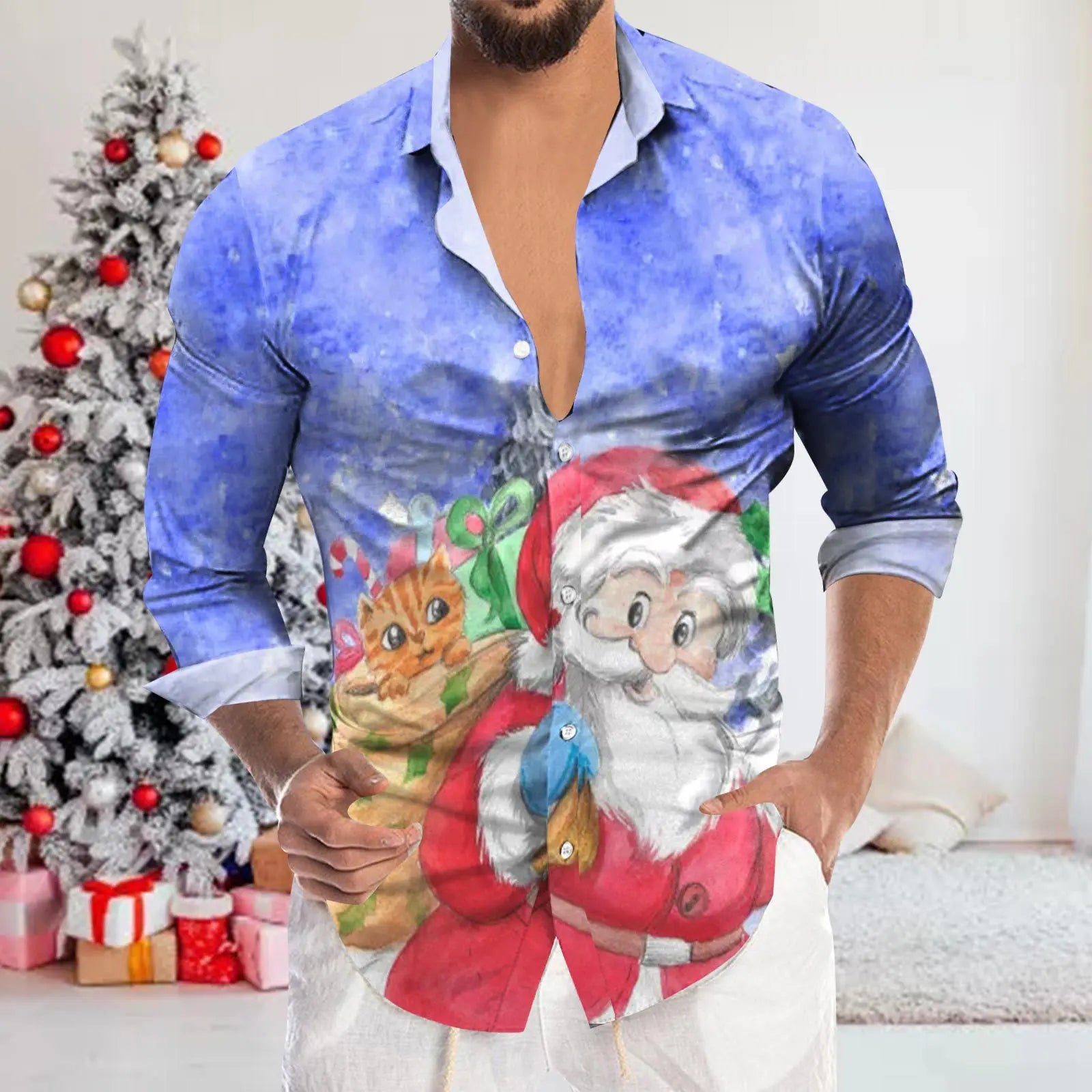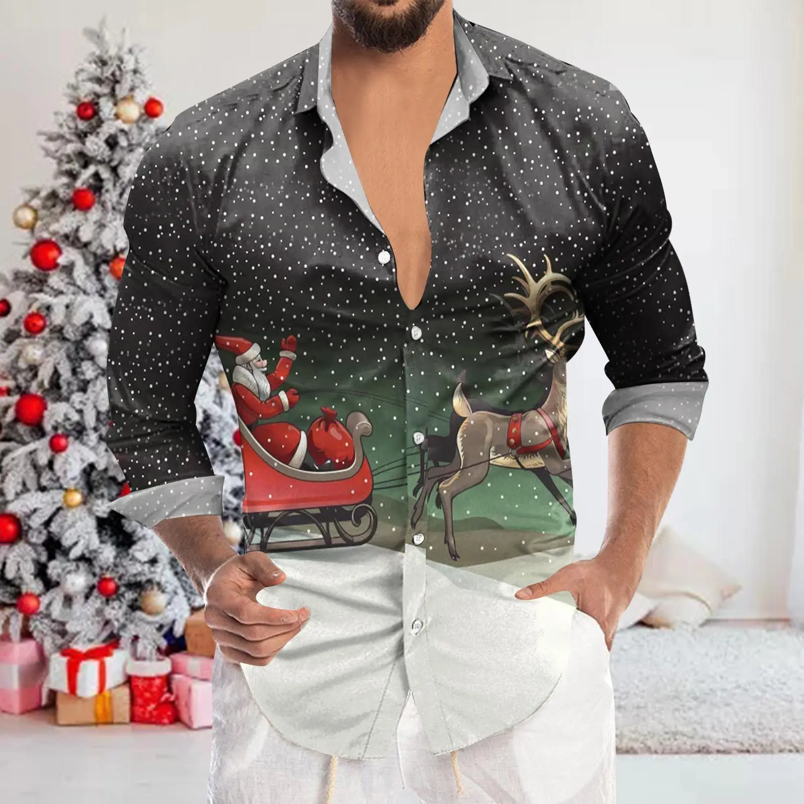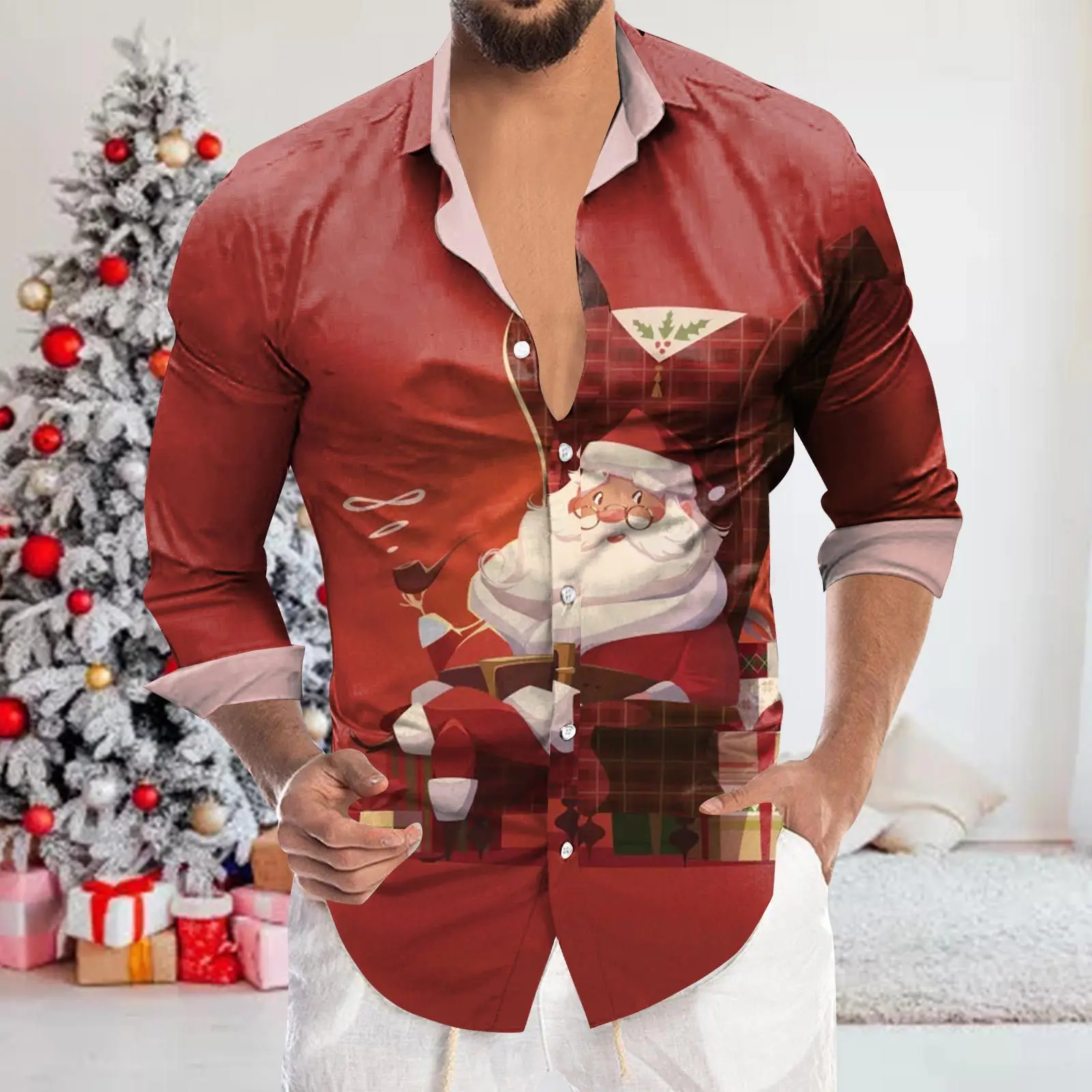 Men's Shirt Merry Christmas Print Long Sleeve Shirt For Men Vacation Party Luxury Y2k Hawaiian Smooth Clothes Streetwear Blouse