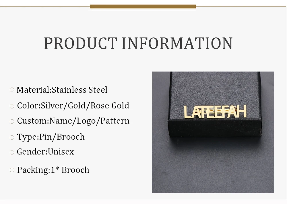 Mini-World Custom Name Brooch Jewelry For Men Personality LOGO Pins Business Casual Unisex Nameplate Brooch Father's Day Gift