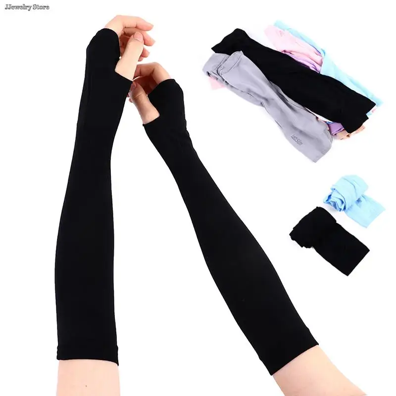 New 1Pair Ice Silk Sleeve Sunscreen Cuff Arm Sleeves Anti-Slip Summer Men Women Gloves Outdoor Riding Uv Sun Protect