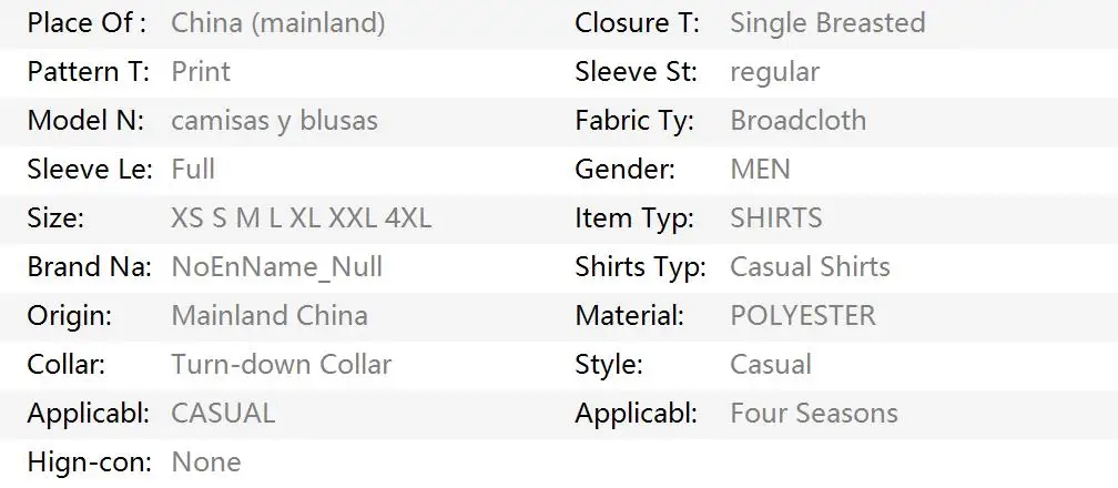 Model Number: camisas y blusas