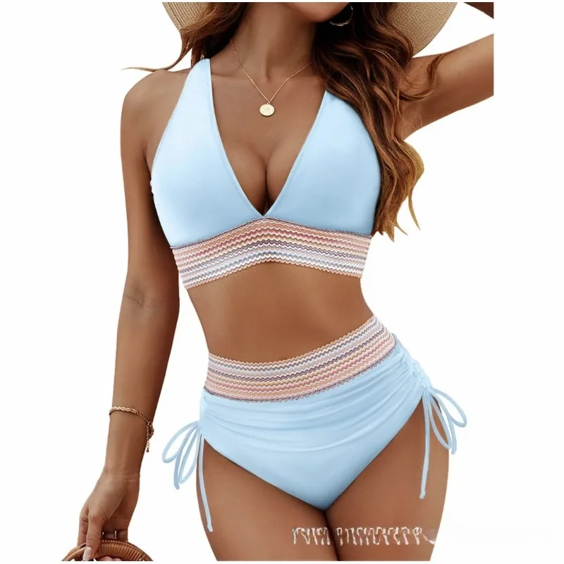 New Fashion Bikini Gathered High-waisted V-neck Strappy Multi-color Bikini Separates Swimsuit Micro Bikini Bathing Suit Women