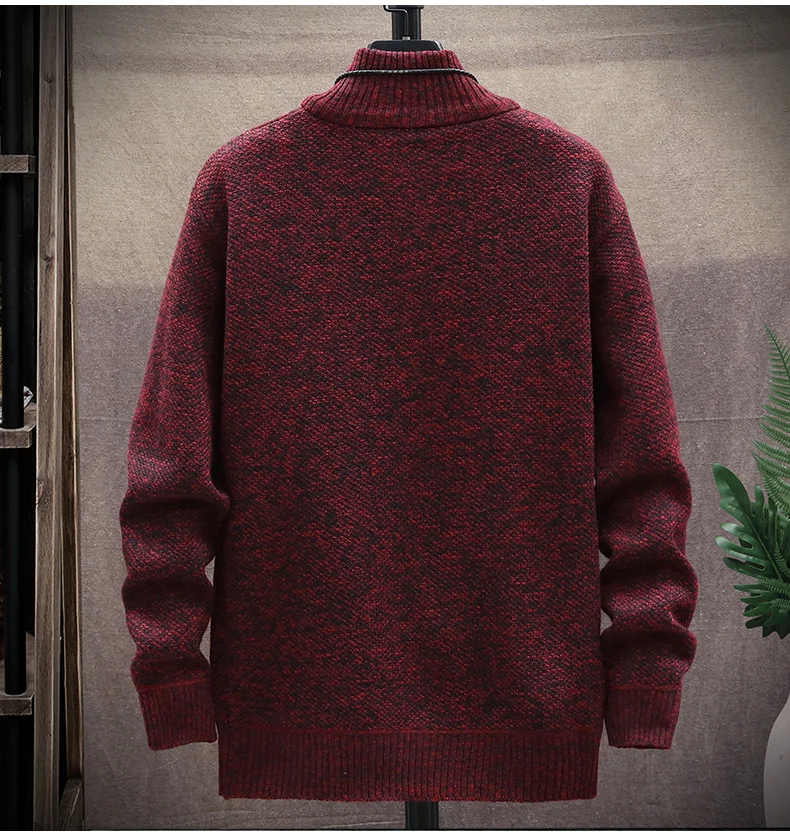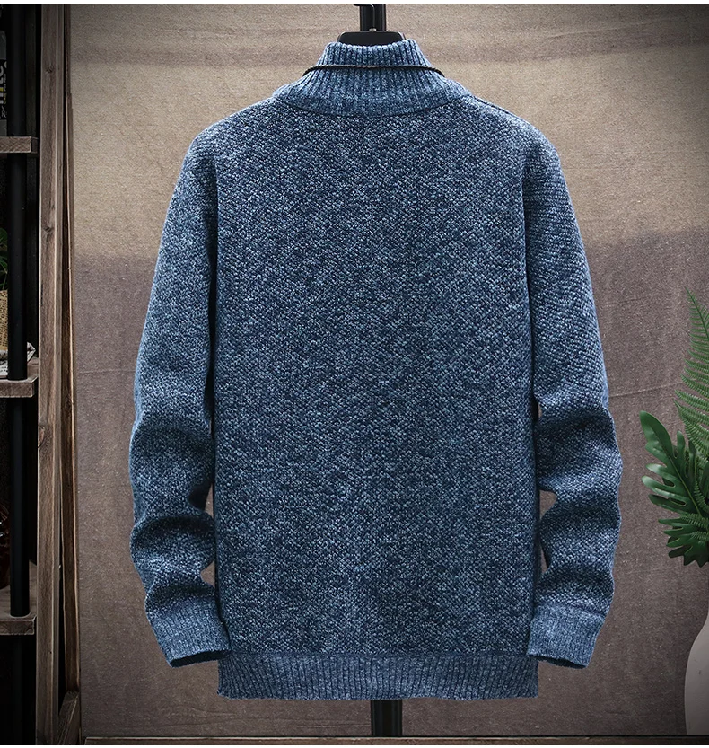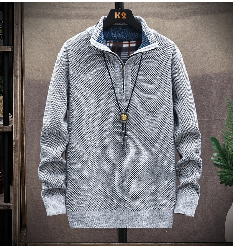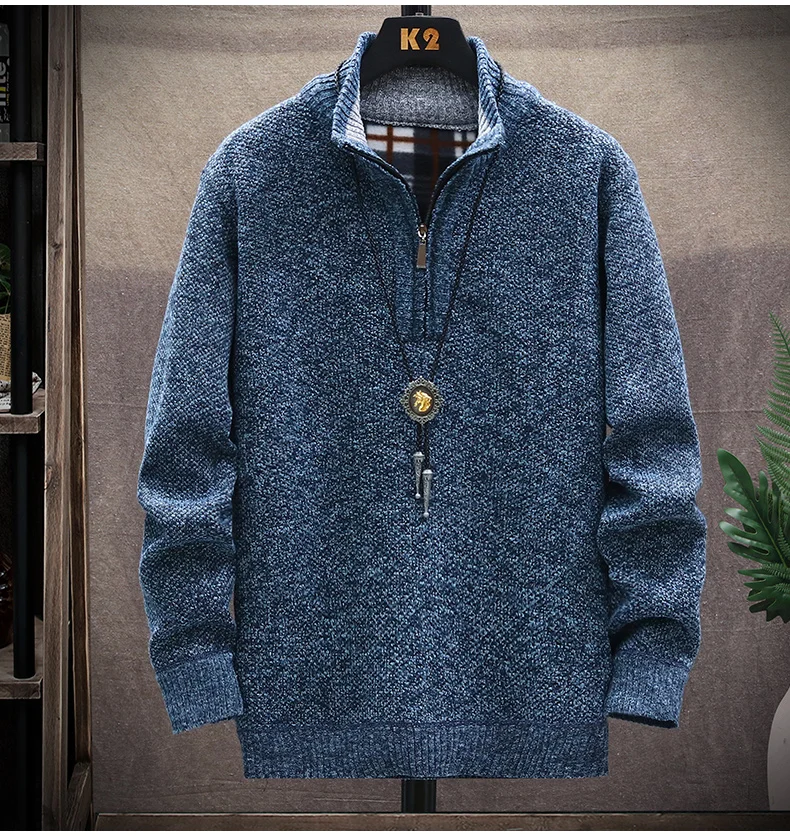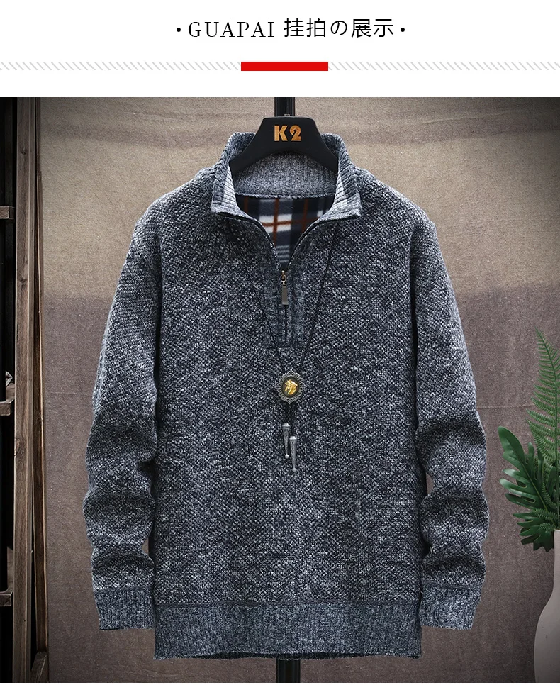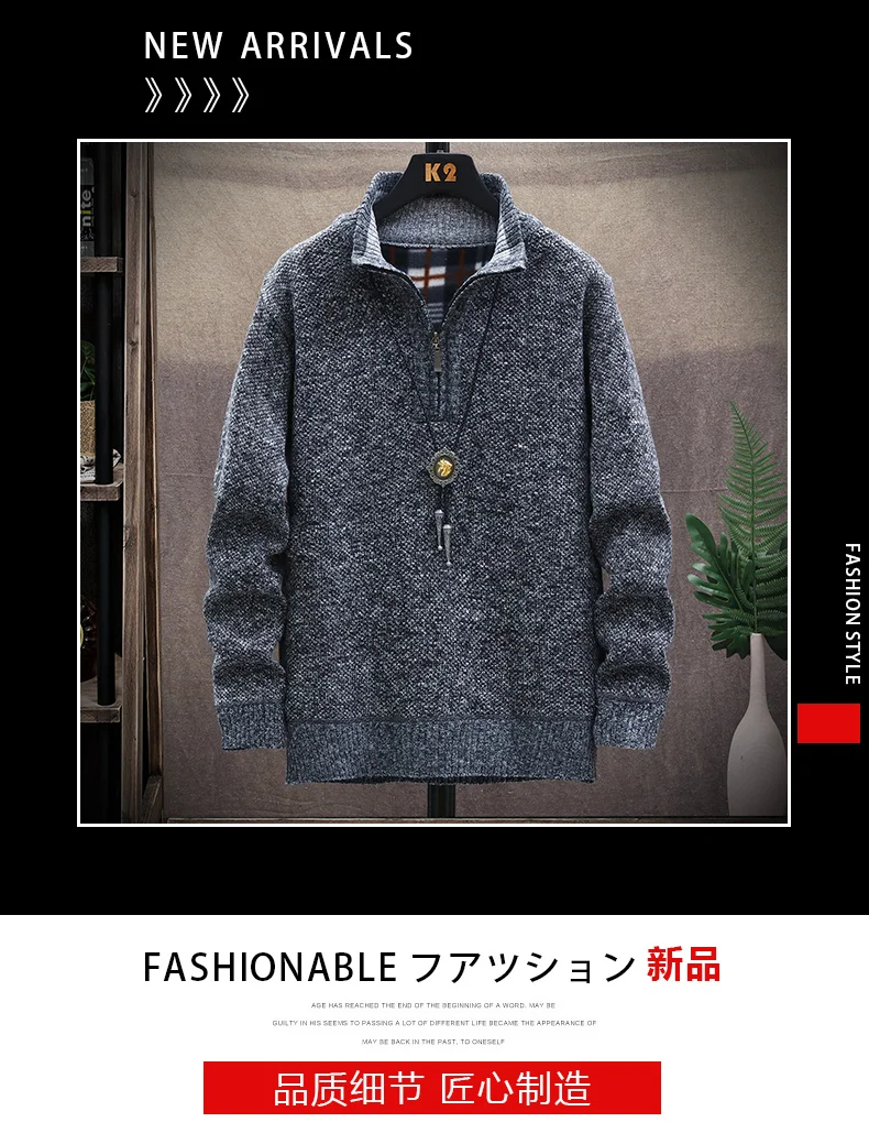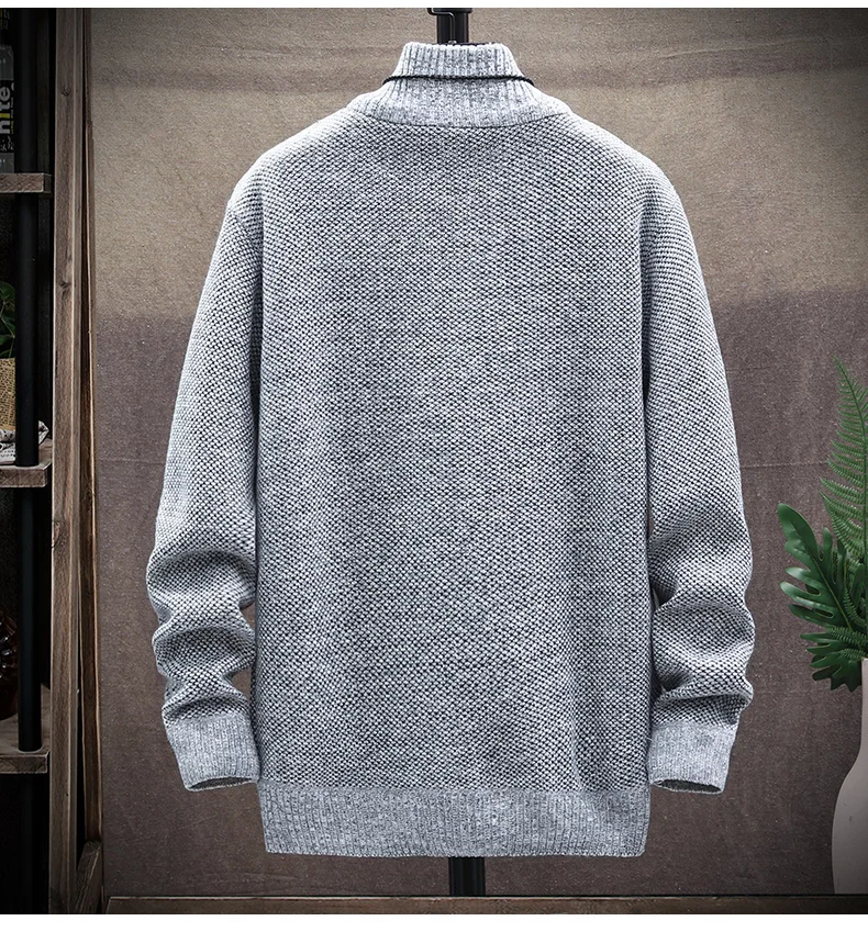New Fleece Men's Large Size Half Turtleneck Sweater Men's Zipper Knit Sweater Slim Fit Casual Pullover Fall Winter Men