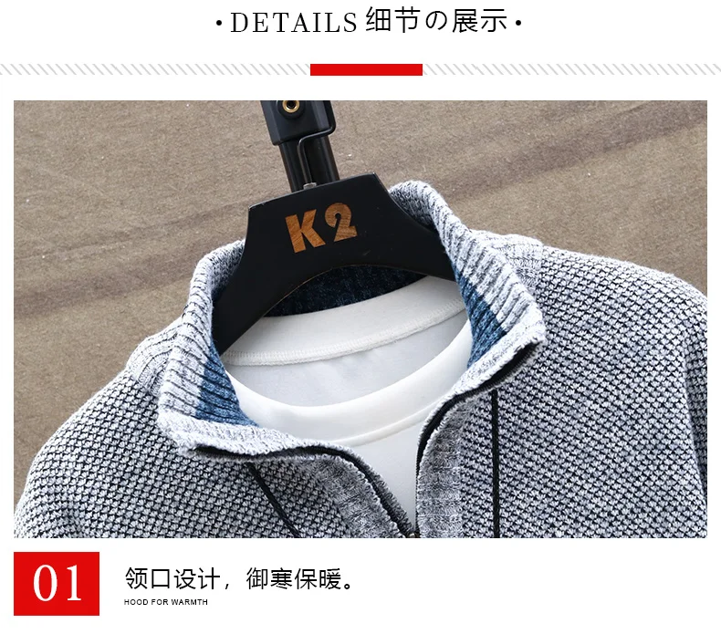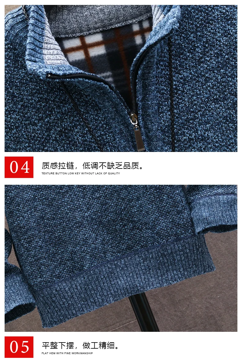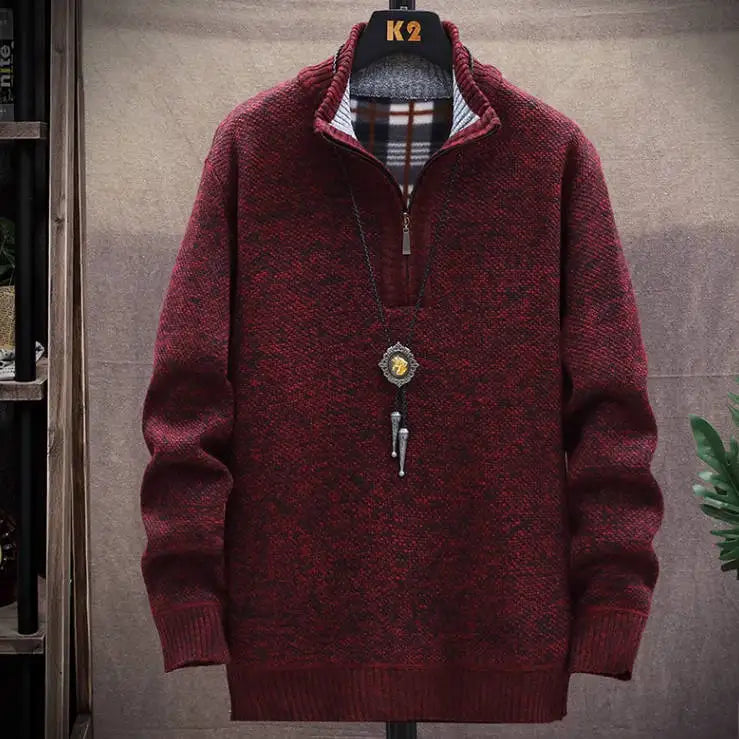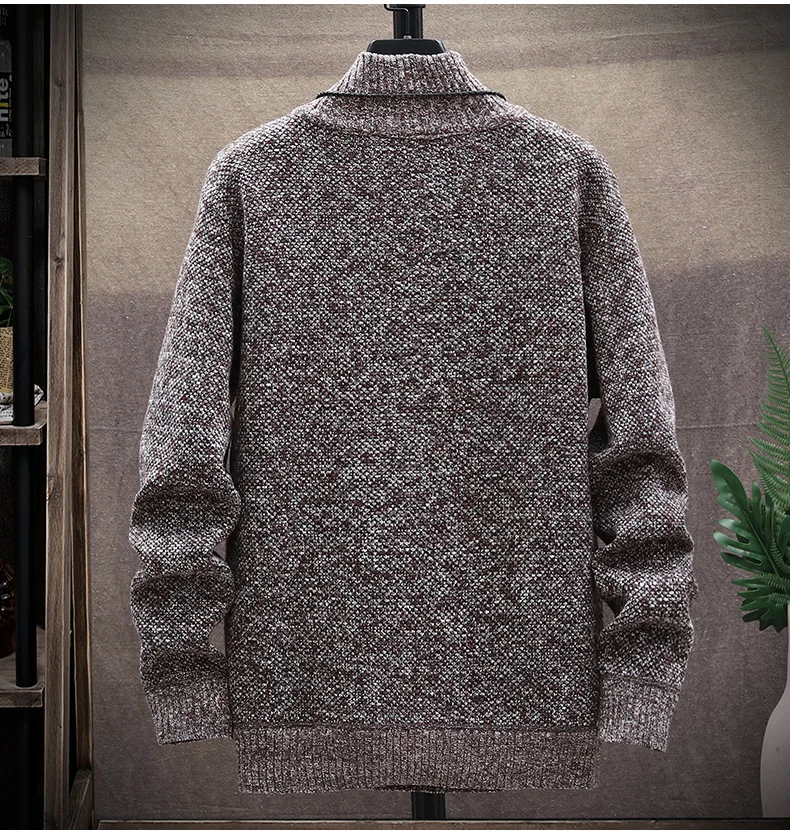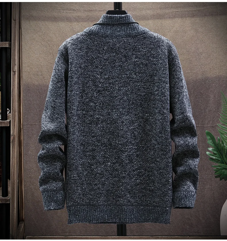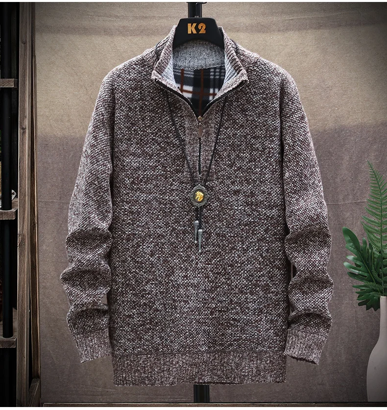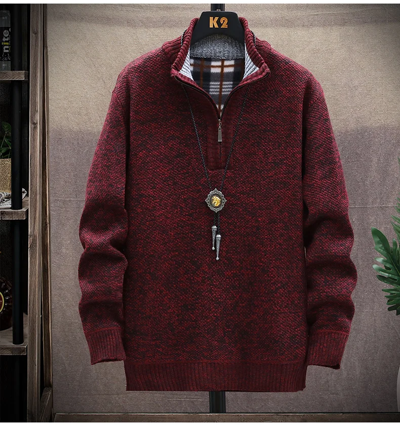 New Fleece Men's Large Size Half Turtleneck Sweater Men's Zipper Knit Sweater Slim Fit Casual Pullover Fall Winter Men