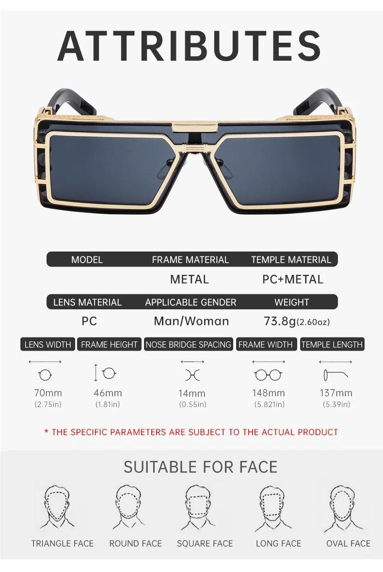 New Metal Men Sunglasses Square Fashion Glasses Steampunk Men Luxury Brand Design Sun Glasses Women Outdoor Punk Eyewear Uv400