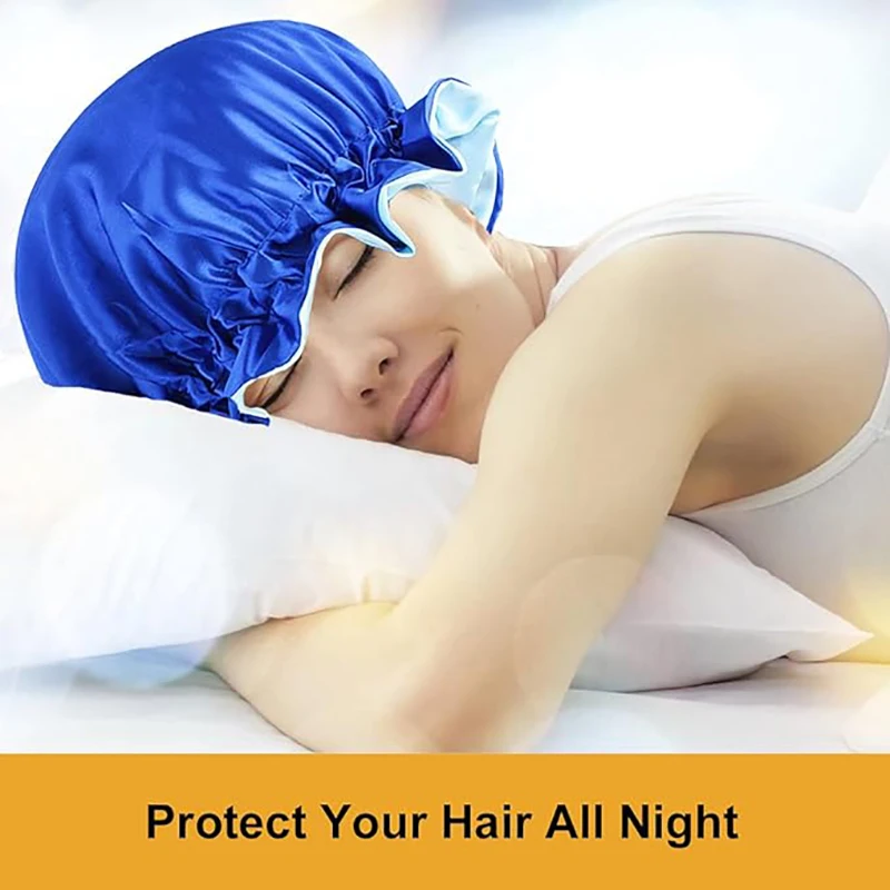New Solid Elastic Double Layer Satin Bonnet Nightcap Doubleside Women Shower Bath Caps Night Sleep Hair Protection Hat
