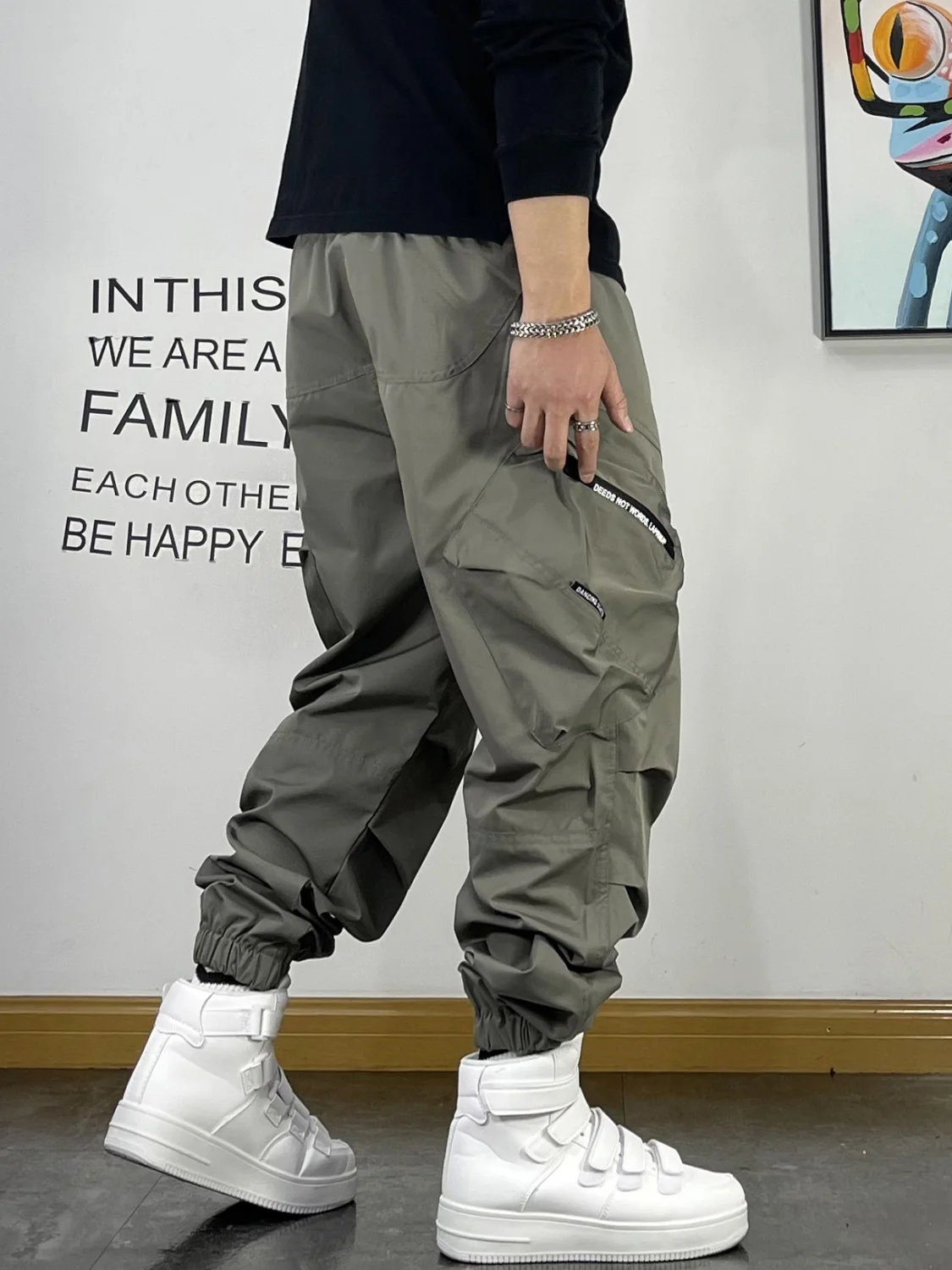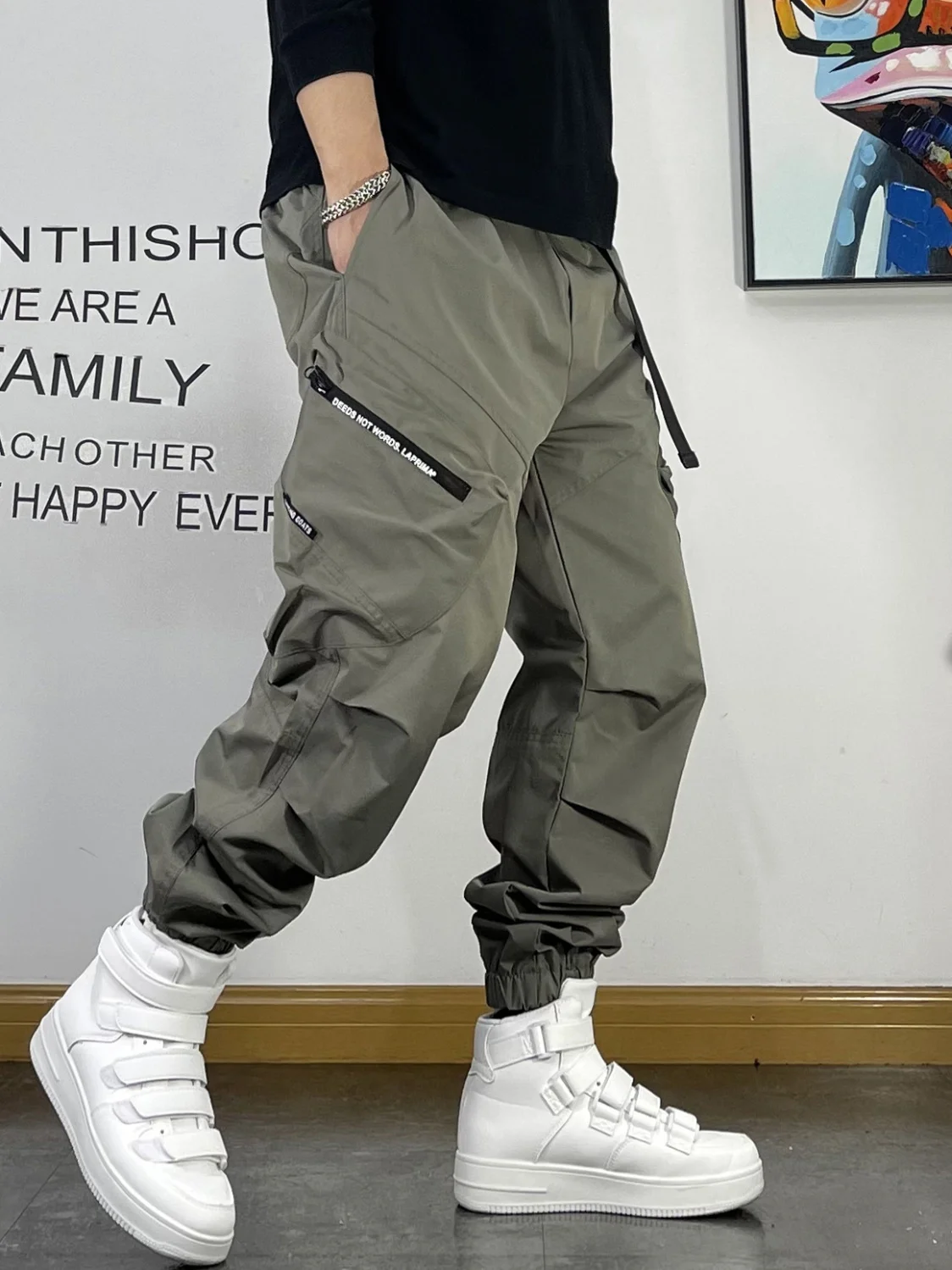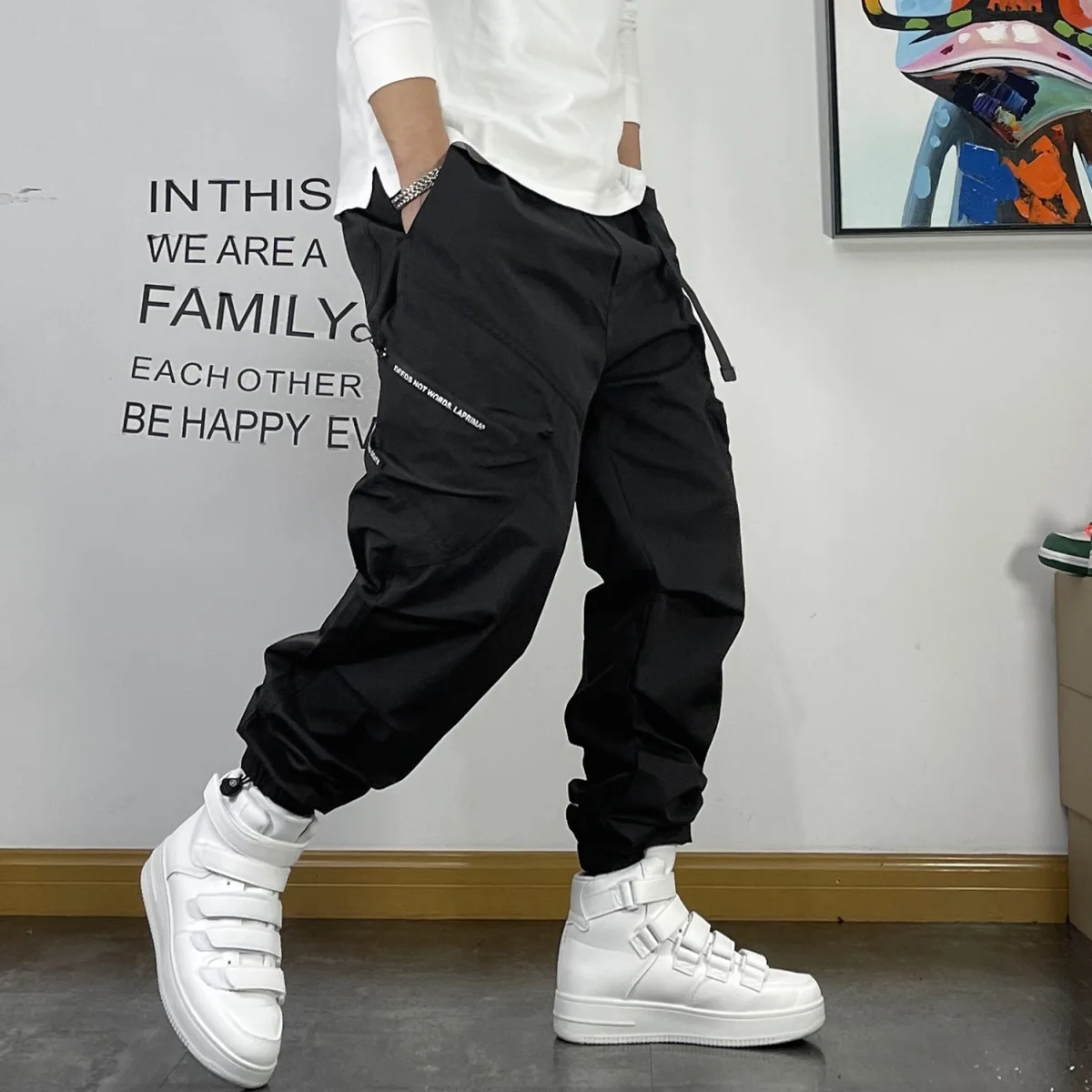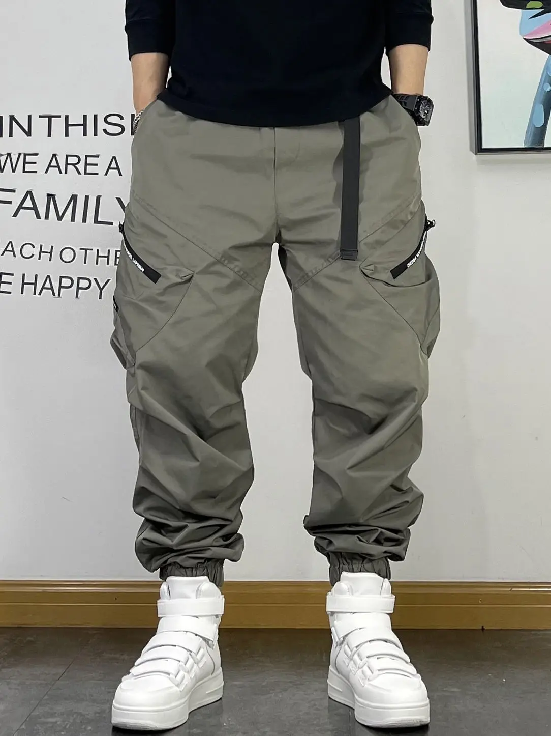New Spring and Autumn Fashion Brand Spliced Waist Belt and Feet 9/4 Work Pants Loose and Versatile Handsome Youth Men's Pants