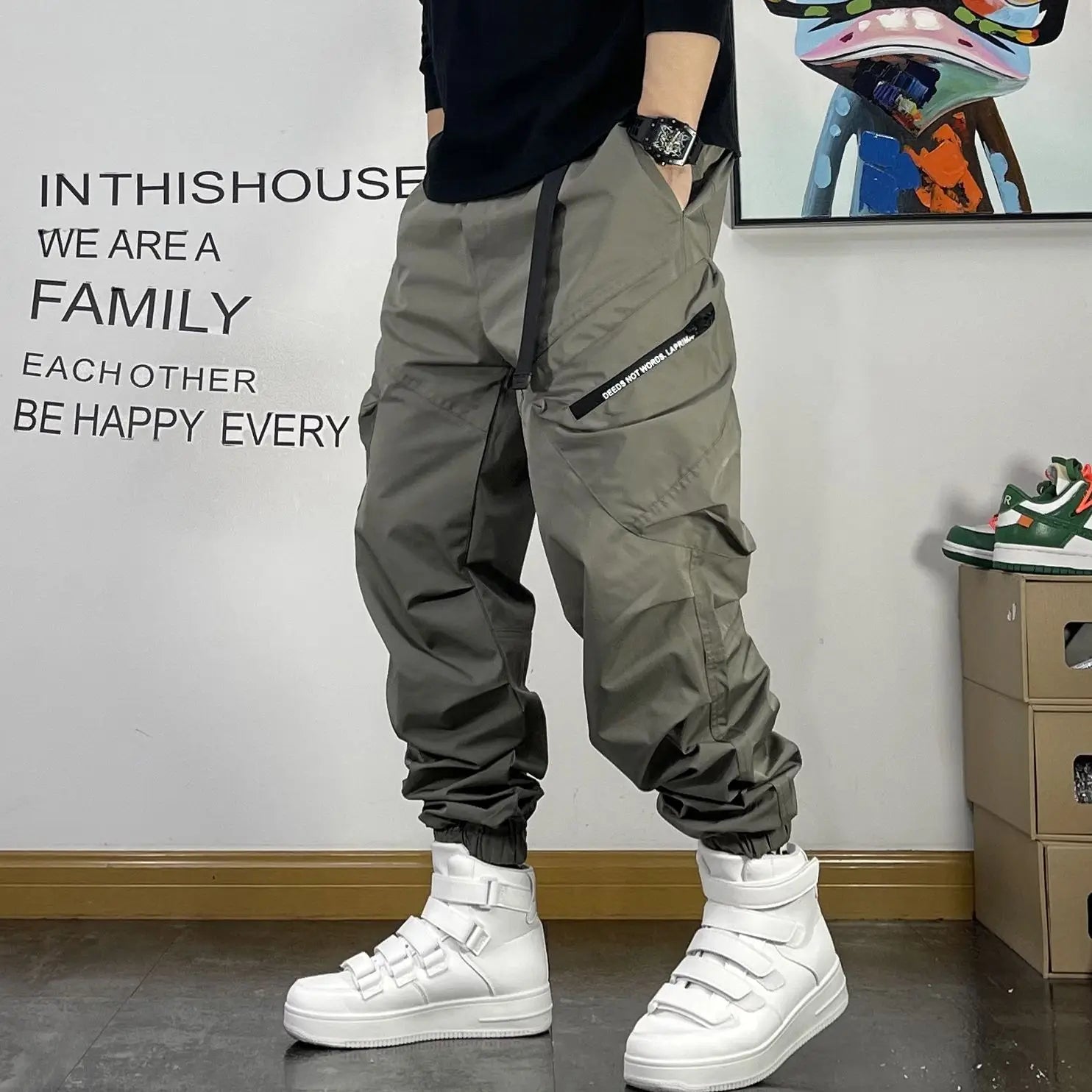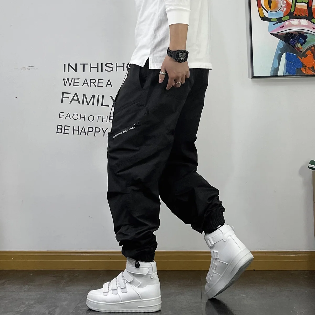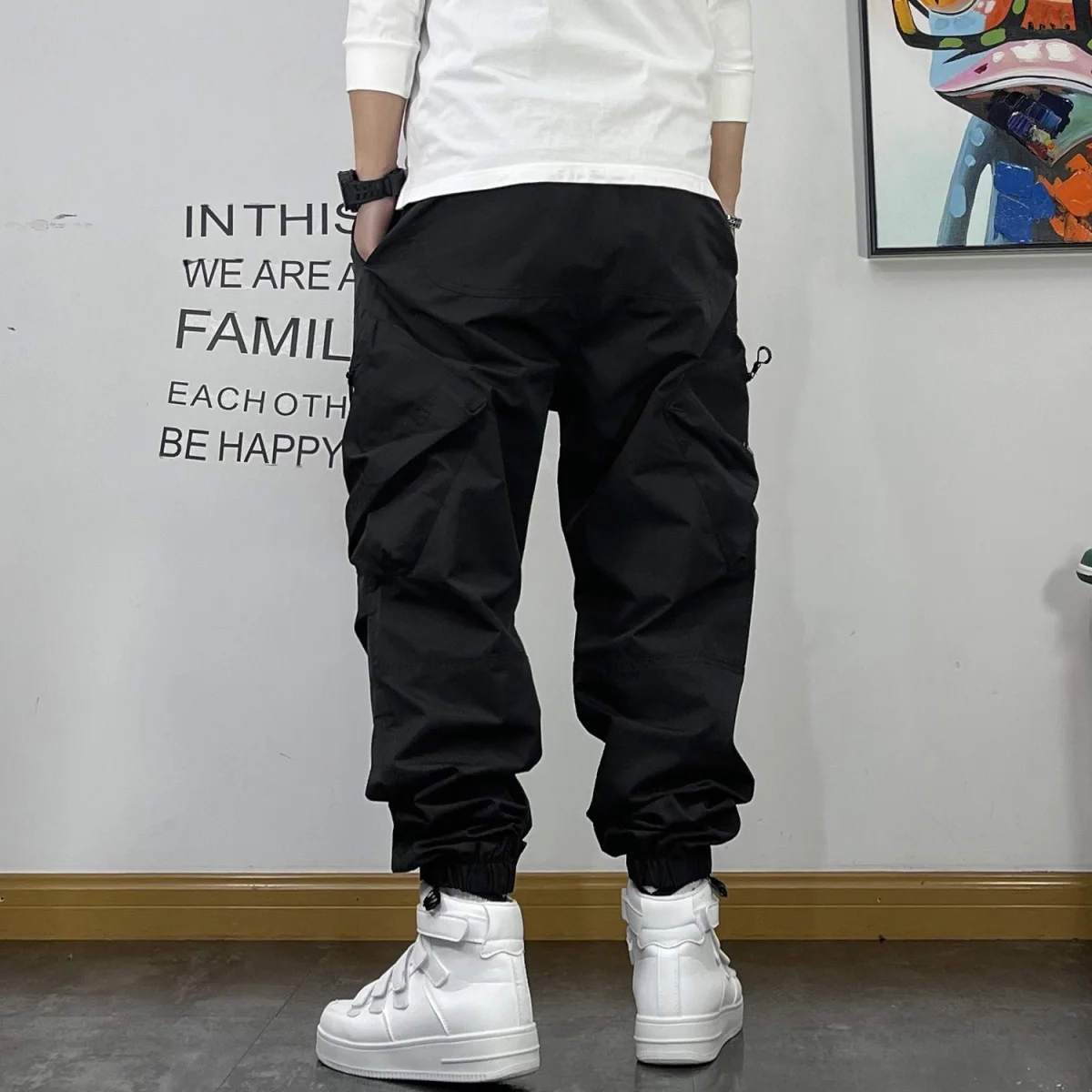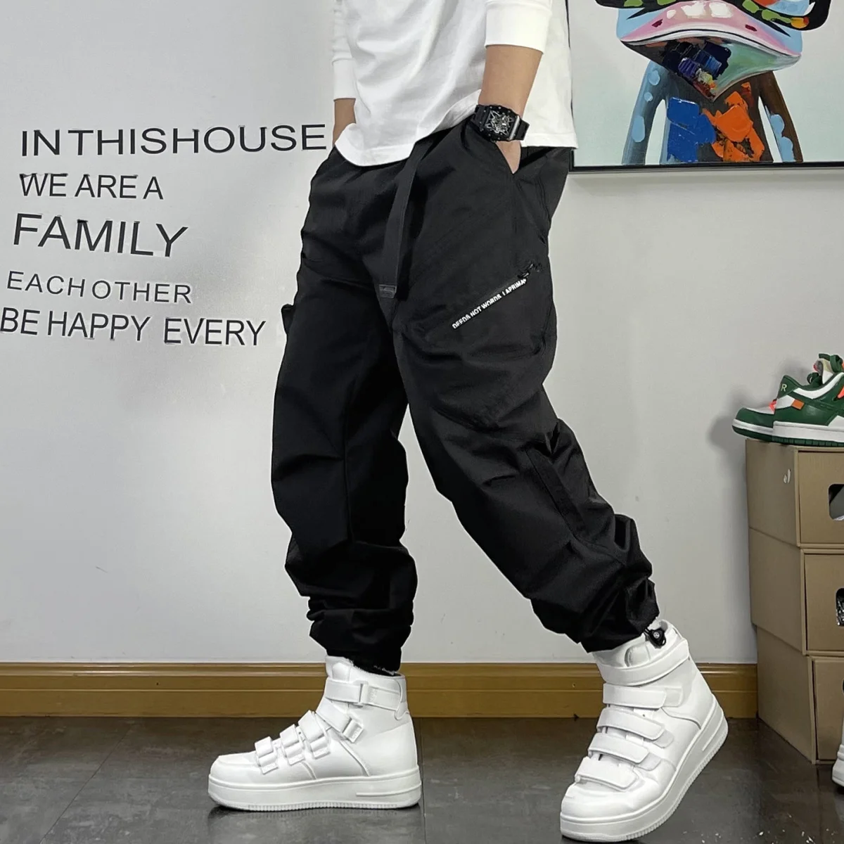 New Spring and Autumn Fashion Brand Spliced Waist Belt and Feet 9/4 Work Pants Loose and Versatile Handsome Youth Men's Pants