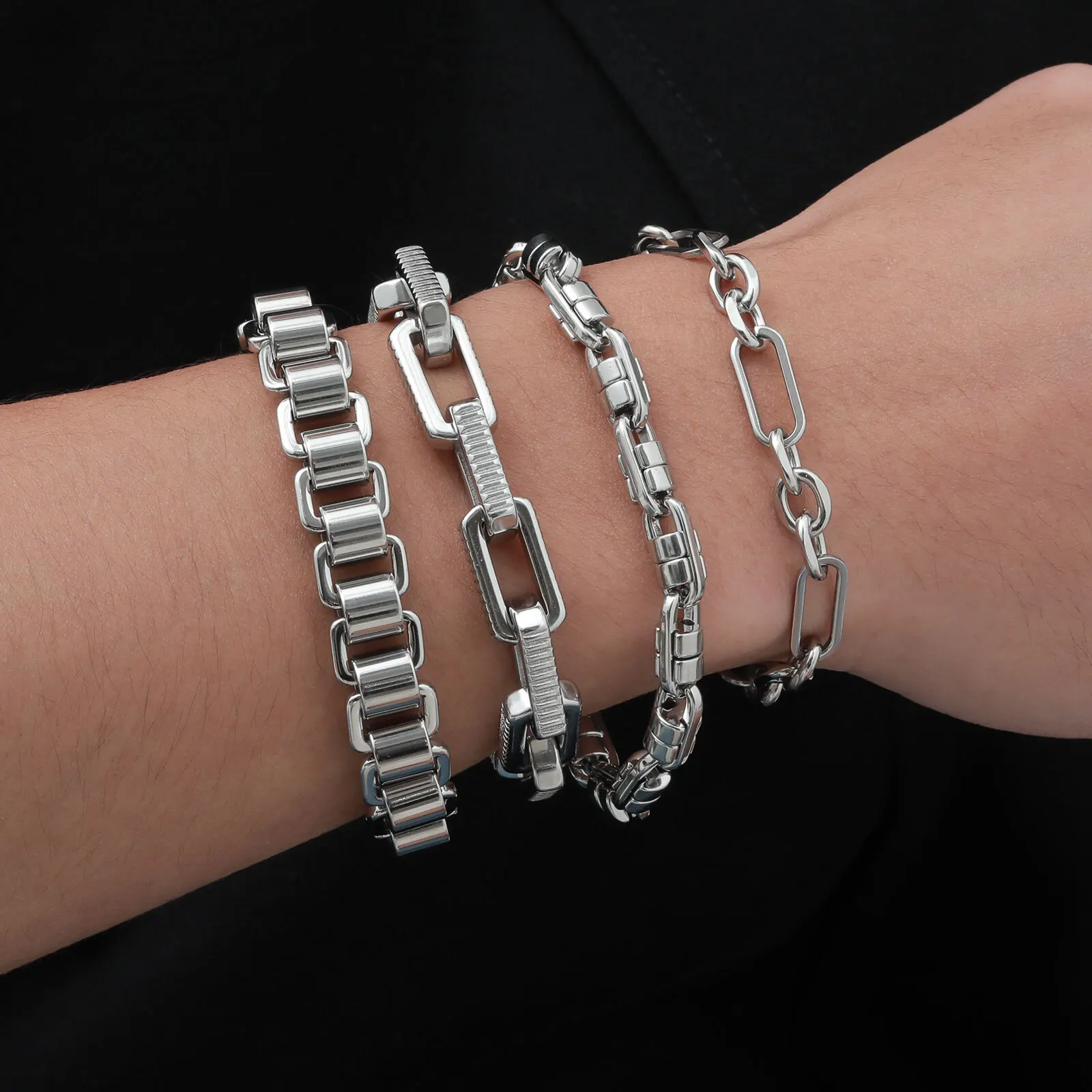 New Stainless Steel Bracelets for Men Boys,Anti Allergy Chain Links Wristband,Hip Hop Trendy Jewelry Gifts to Father BBF