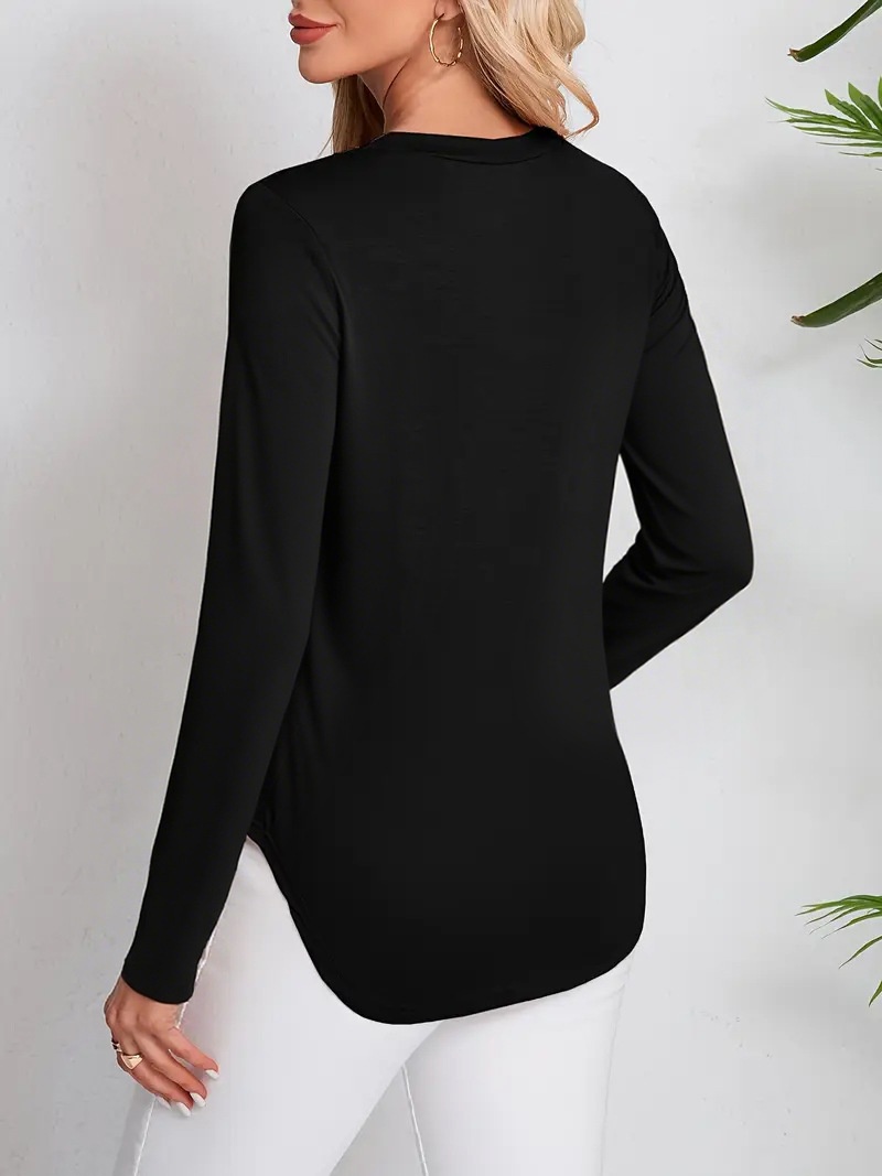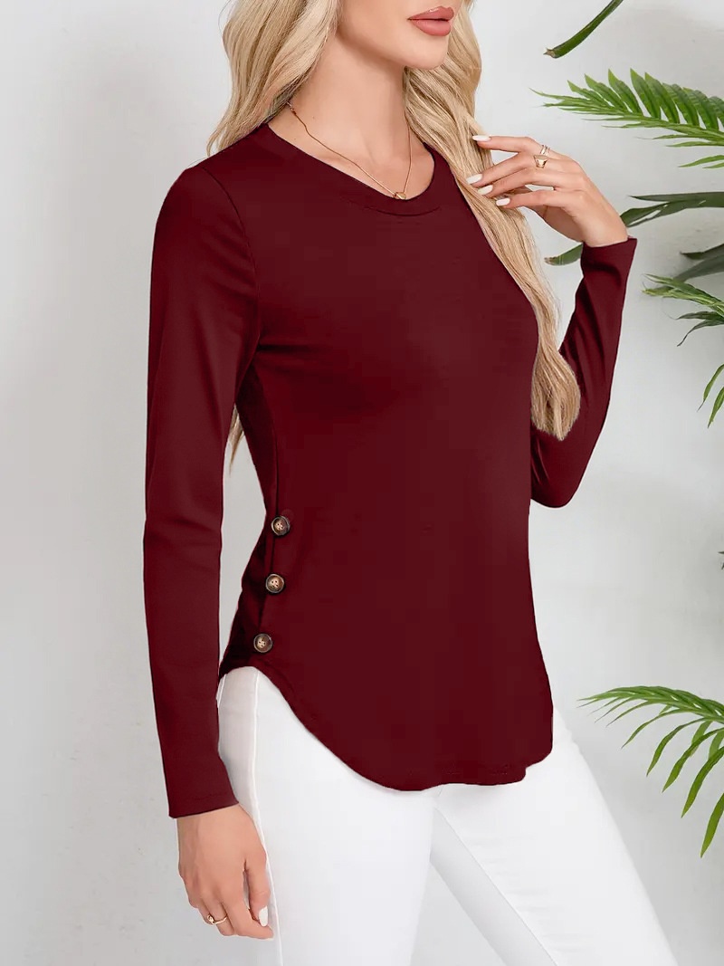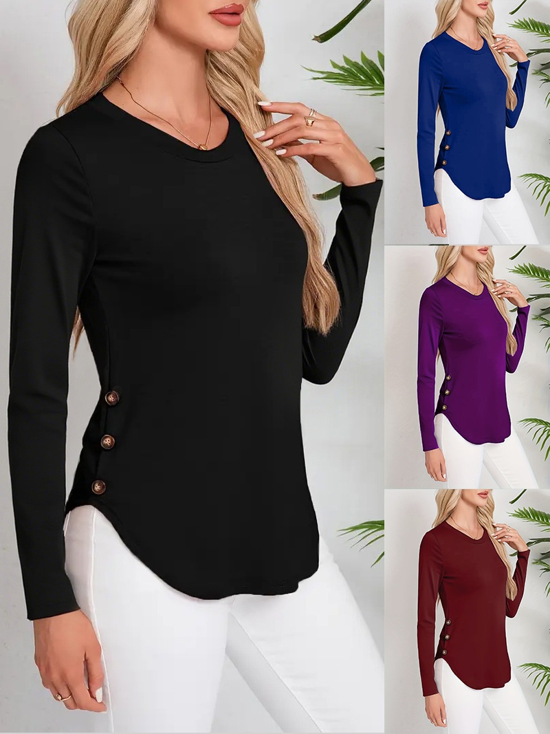 New Women's Autumn And Winter Round Neck Curved Hem Long Sleeve