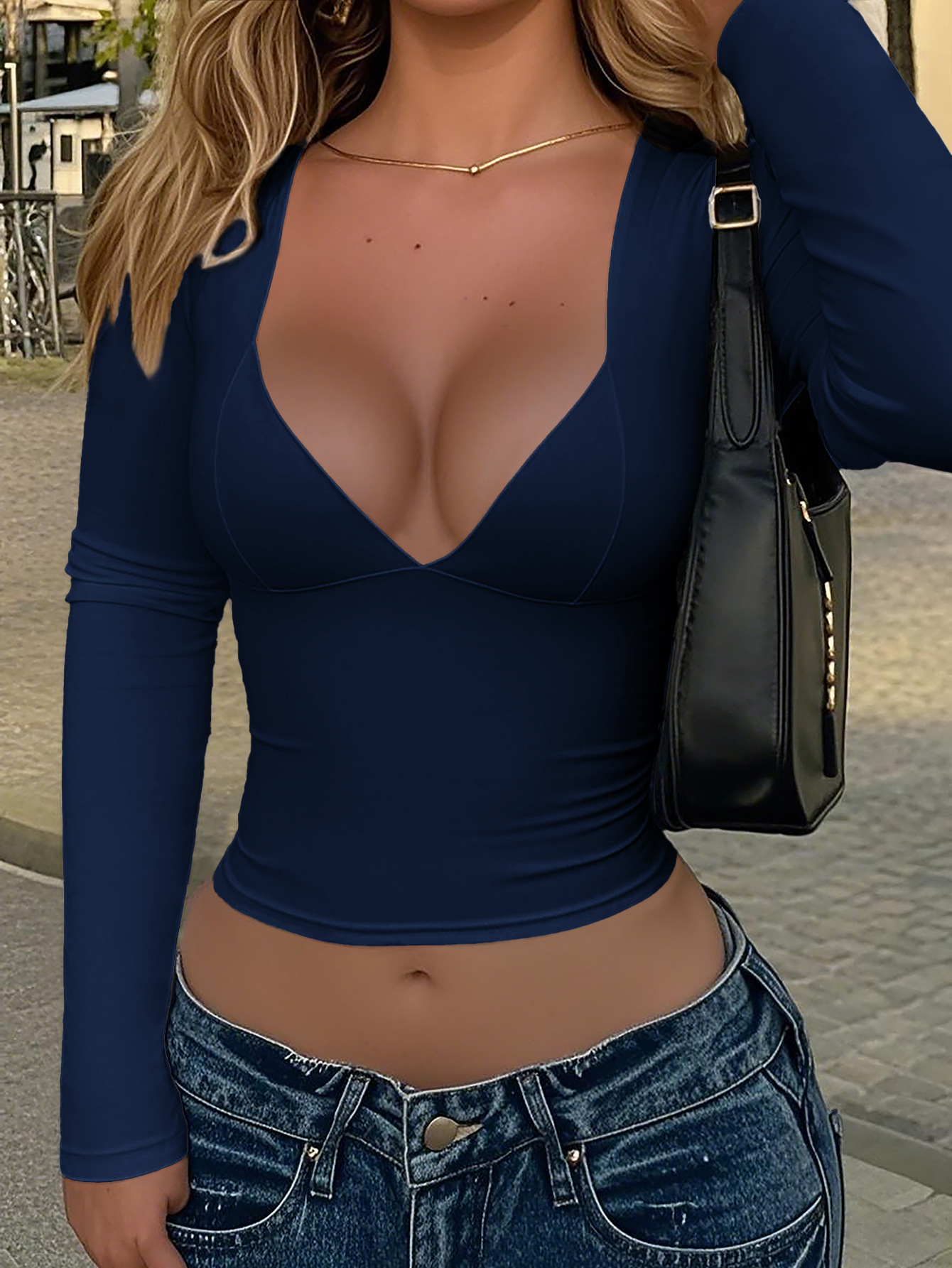 New Women's Clothes Temperament Sexy V Long Sleeve