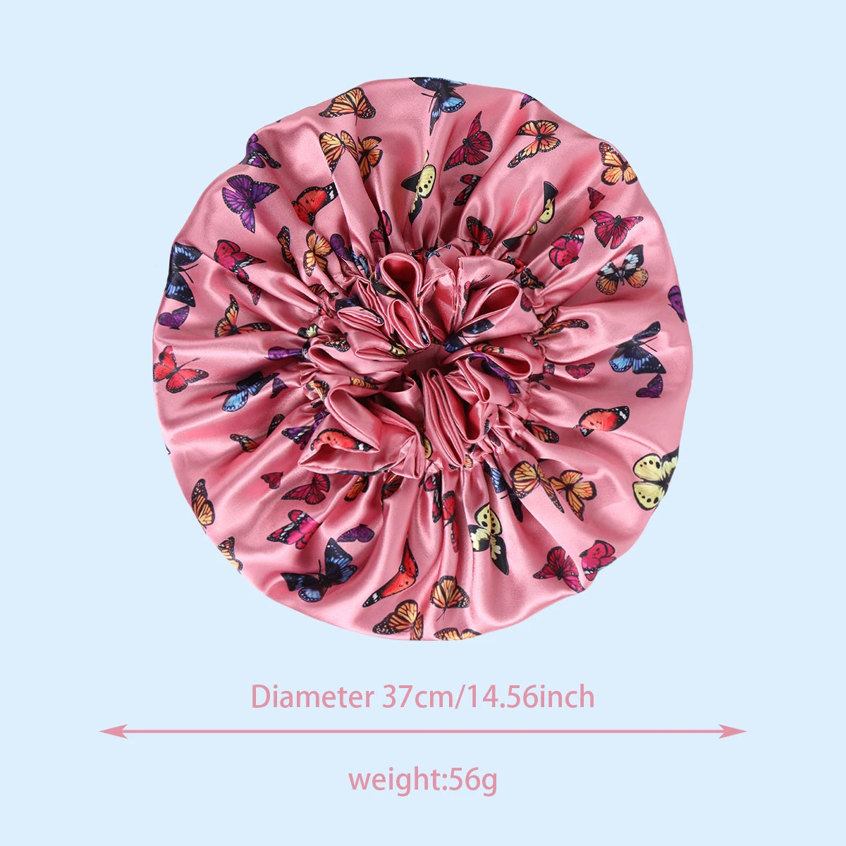 Pink Butterfly Double Layer Adjustable Satin Bonnet Cap Hair Protect Virgin Sleep Bonnet for Women And Girls