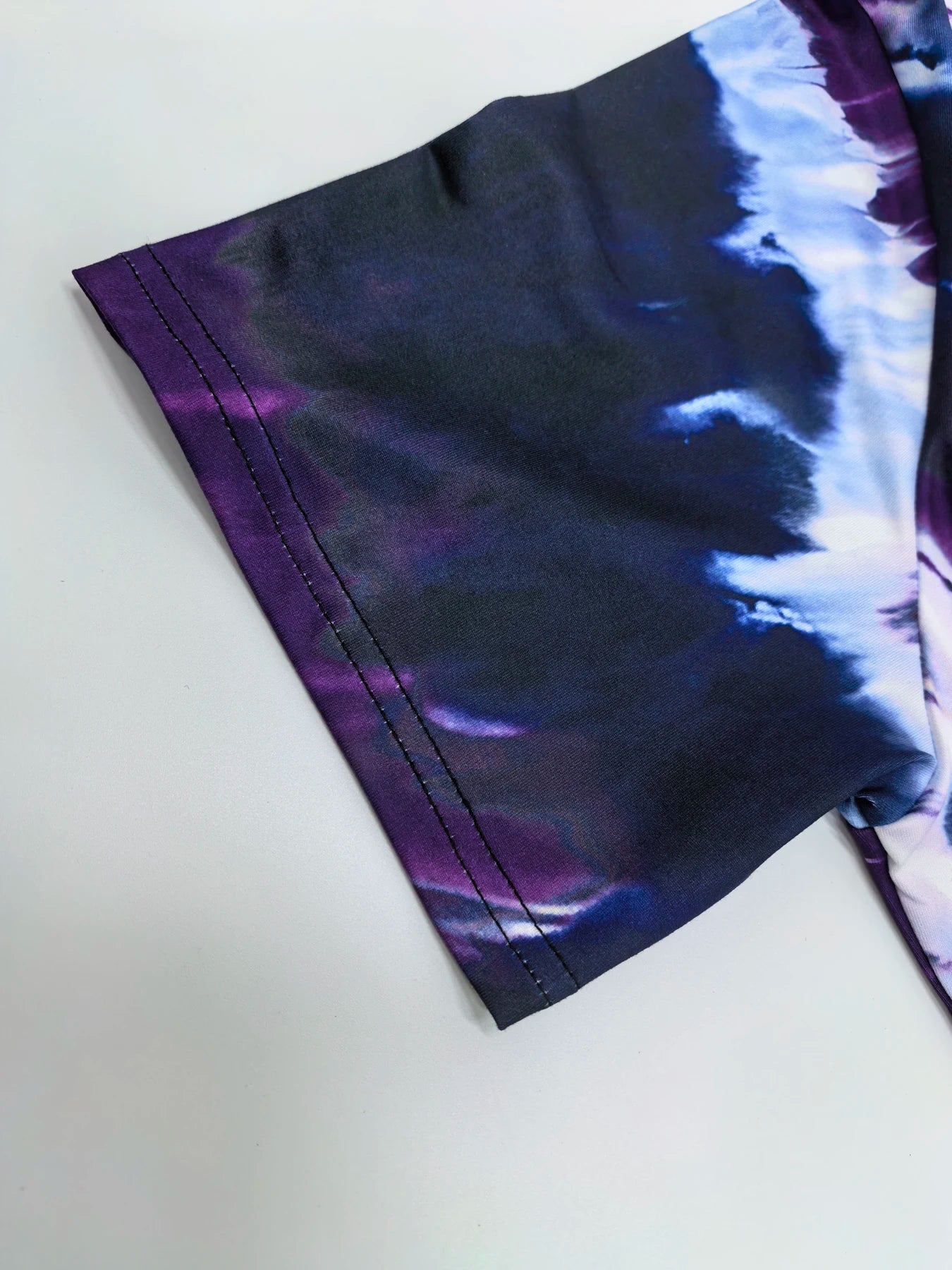 plus size tie-dye heart-print T-shirt casual short-sleeved knitted top round neck, spring and summer series, large size shirt