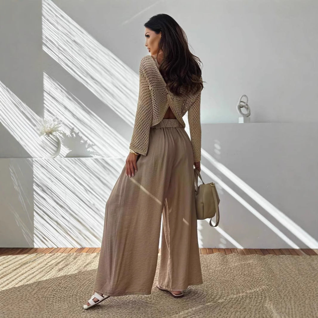 Pullover V-neck Hollow Out Back Cross Loose Sweater